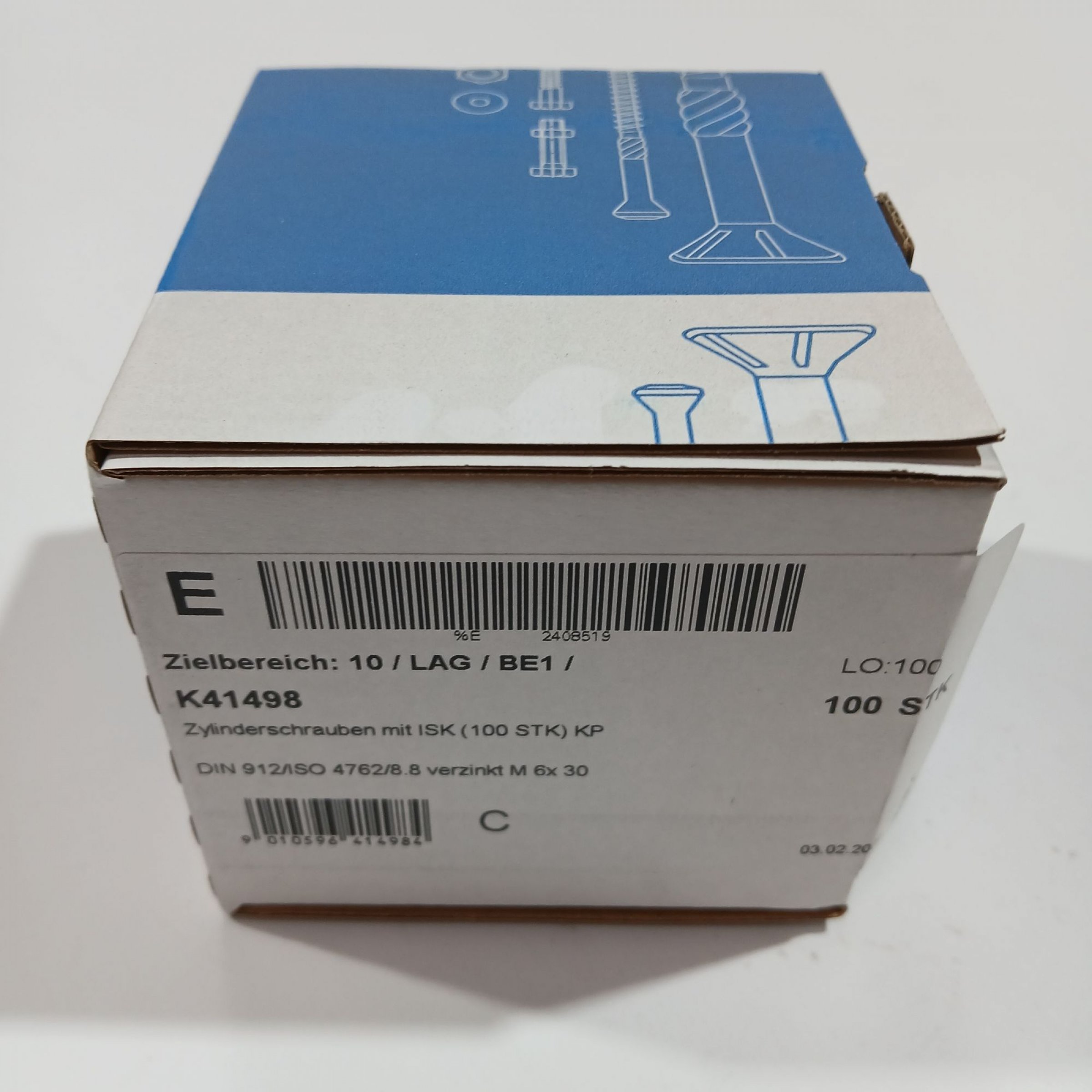 1 Stk. Zylinderschrauben mit ISK (100 STK) KP M6x30