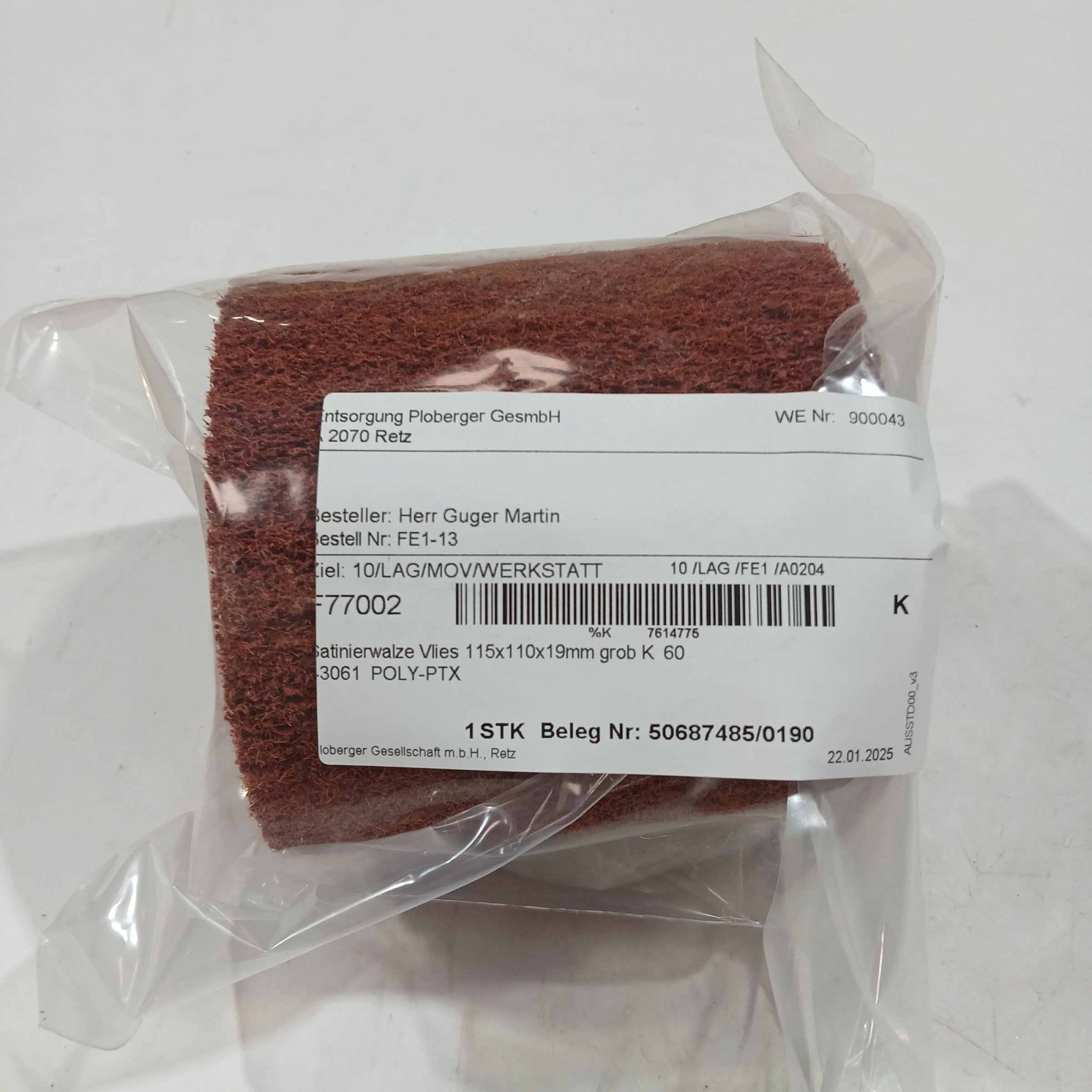 1 Stk. Satinierwalze Vlies 115x110x19mm grob K60