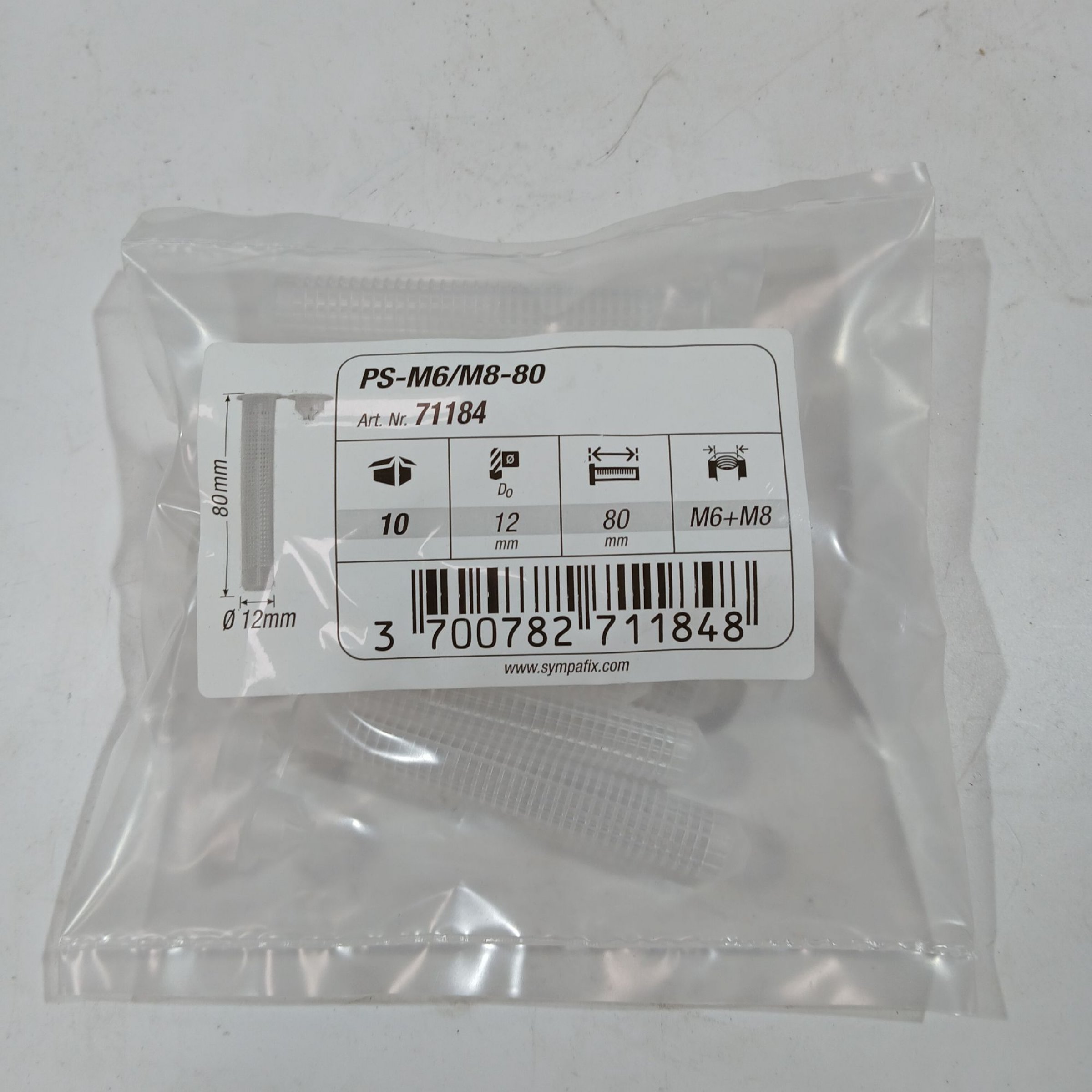 1 Stk. Siebhülse PS-M6/M8-80 12x 80, Kunststoff 10er Pack