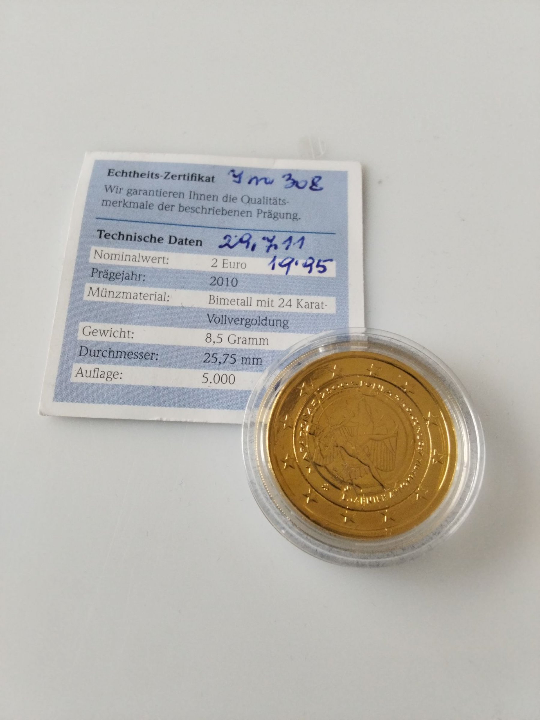 1 Stk. 2 Euro Sondermünze vergoldet