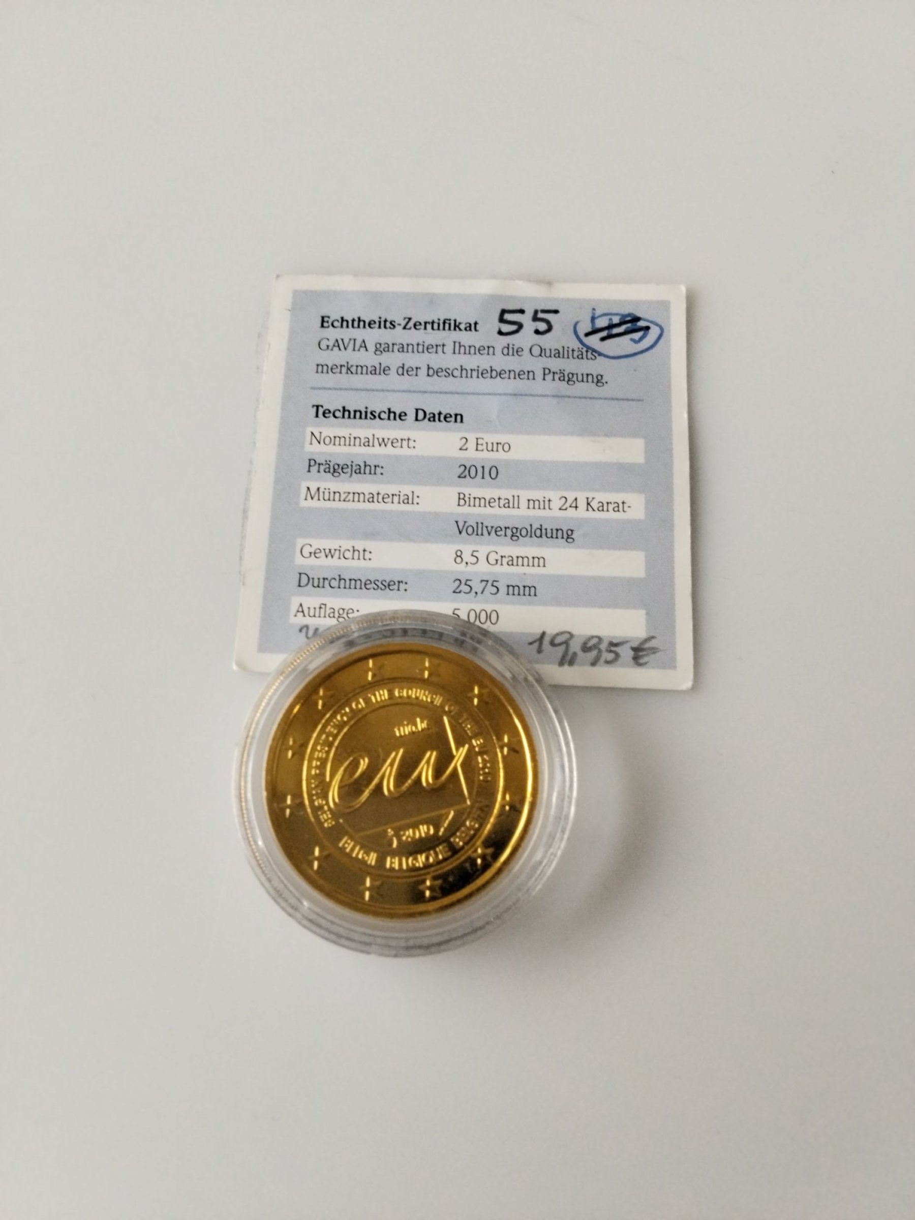 1 Stk. 2 Euro Sondermünze vergoldet