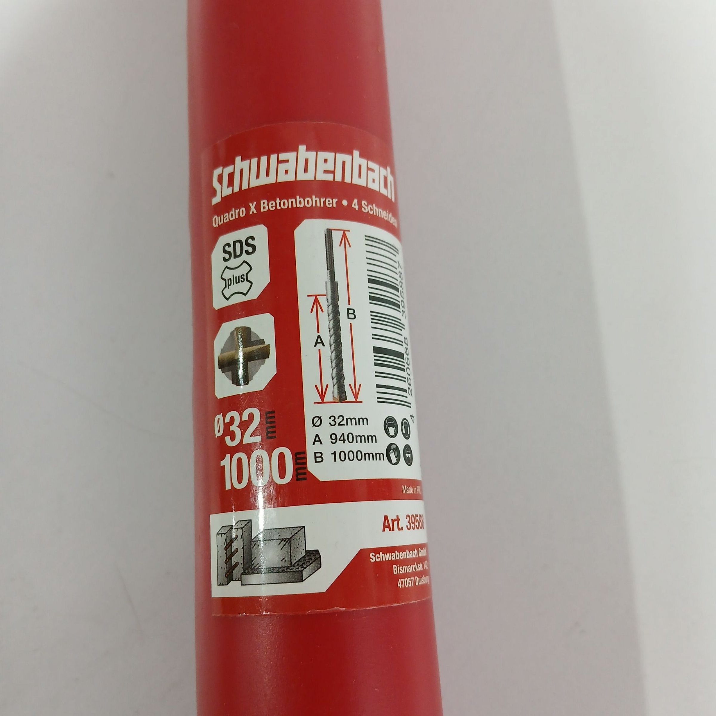 1 Stk. Schwabenbach Quadtro x Betonbohrer 4 Schneiden 32mm 1000mm
