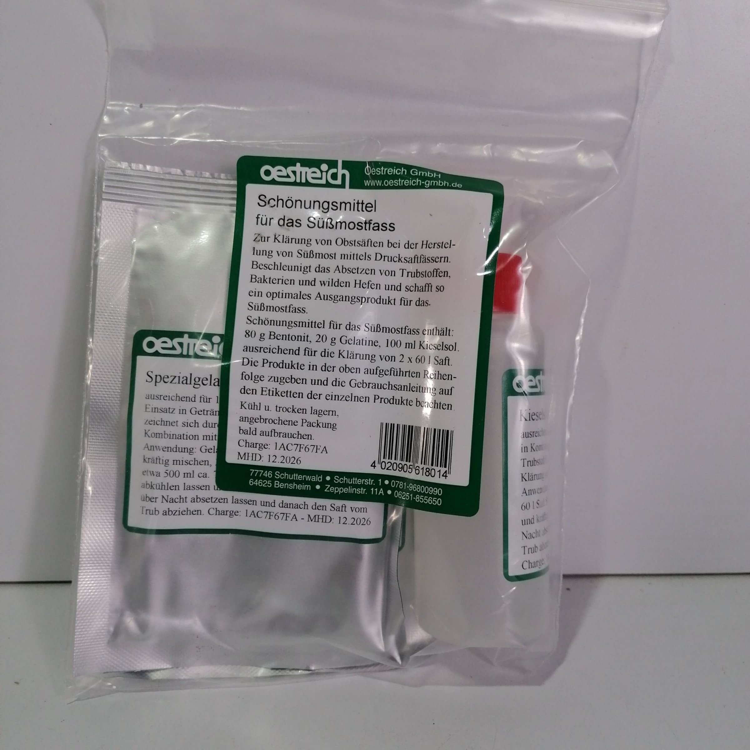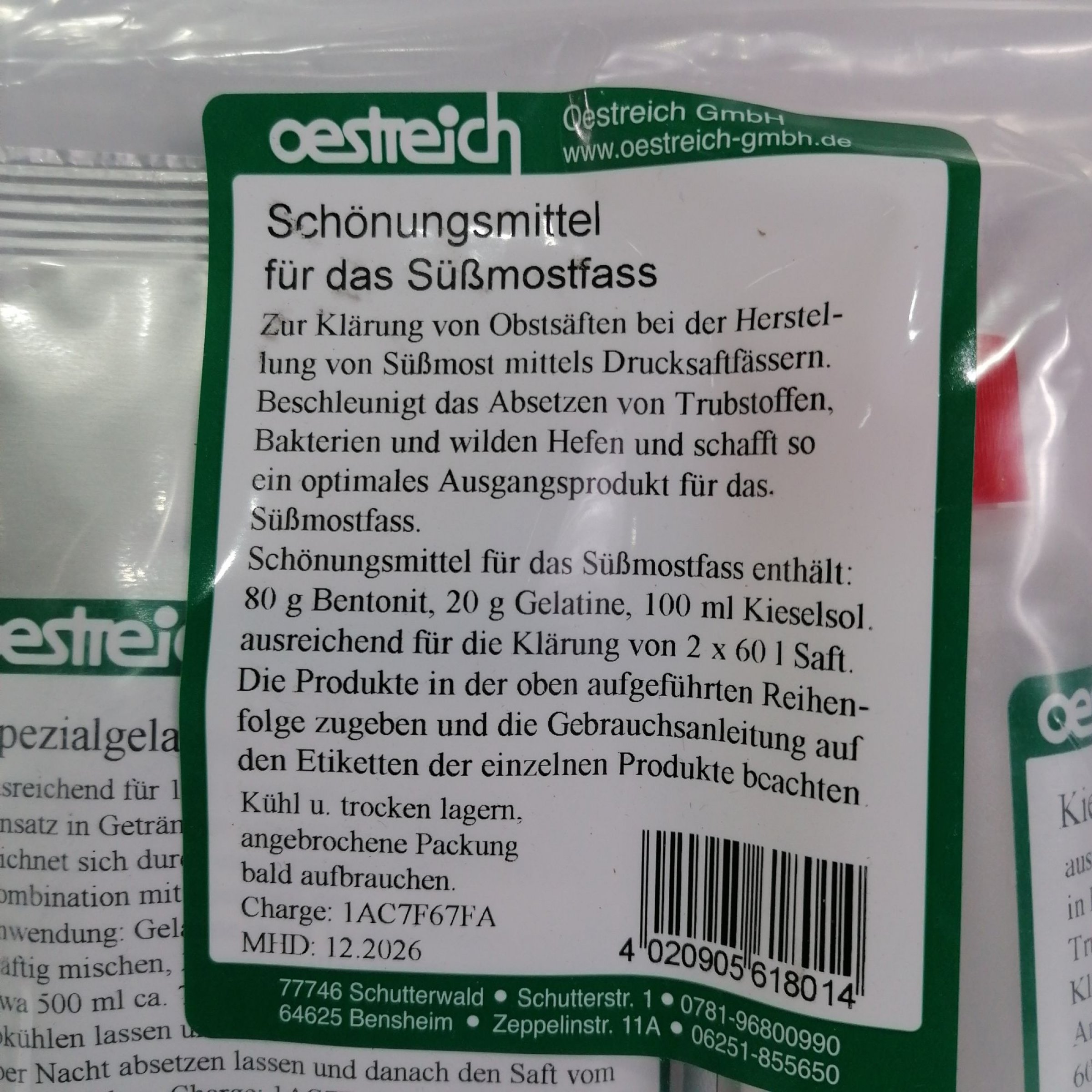 1 Stk. Oestreich Schönungsmittel für das Süßmostfast