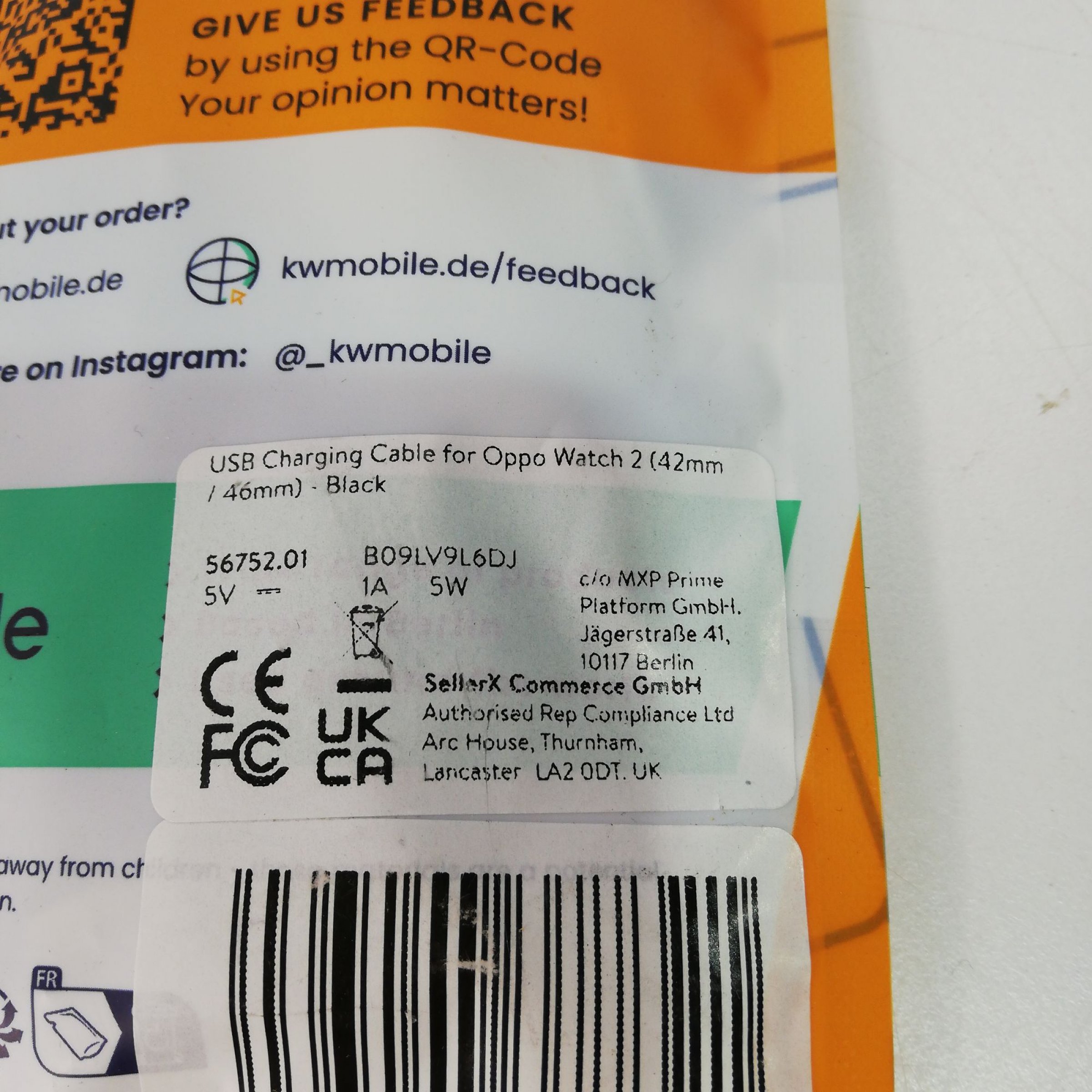 1 Packung KW Mobile USB Charging Cable for Oppo Watch 2 2x
