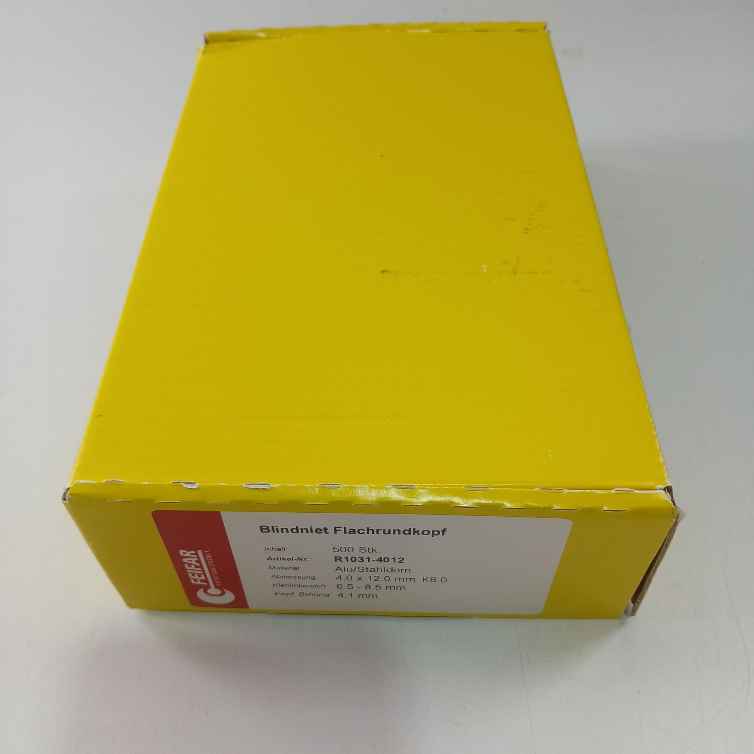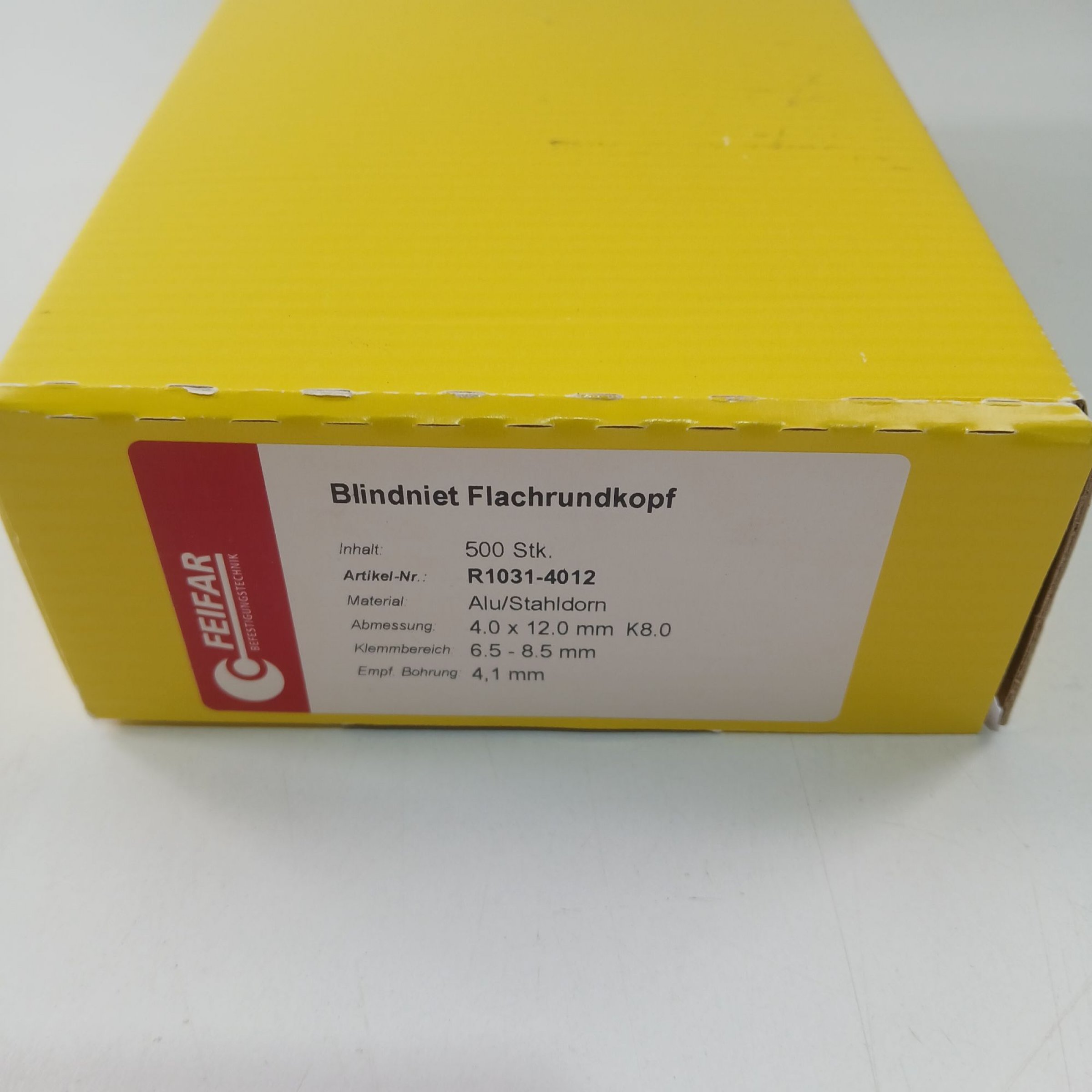 Artikel Nr. 519916: Feifar Blindniet Flachrundkopf R1031-4012 500Stk.Artikel Nr. 519916: Feifar Blindniet Flachrundkopf R1031-4012 500Stk.