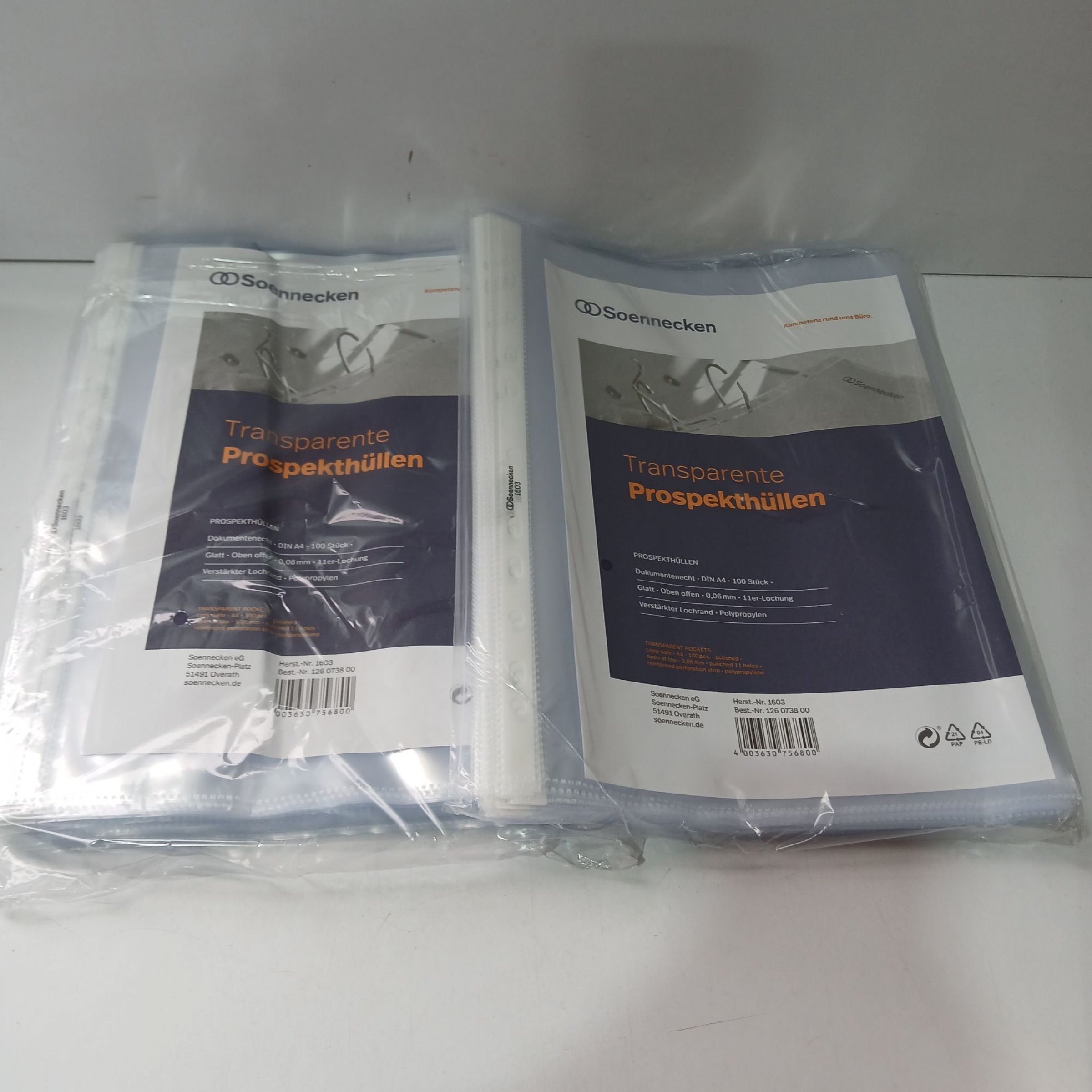 2 Packungen Soennecken Transparente Prospekthüllen 100stk