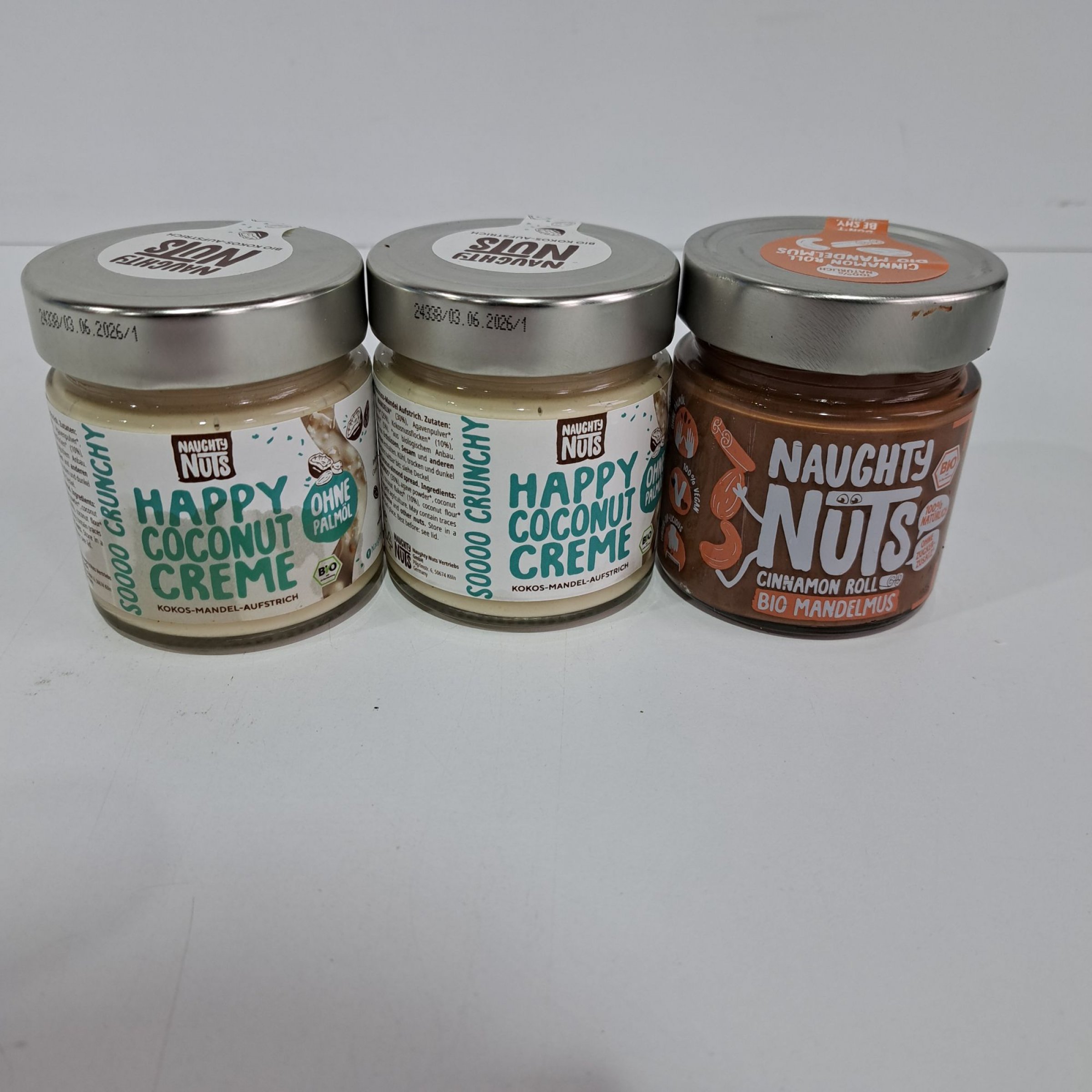 1 Packung Naughty Nuts 2x Coconut, 1x Mandelmus je 250g