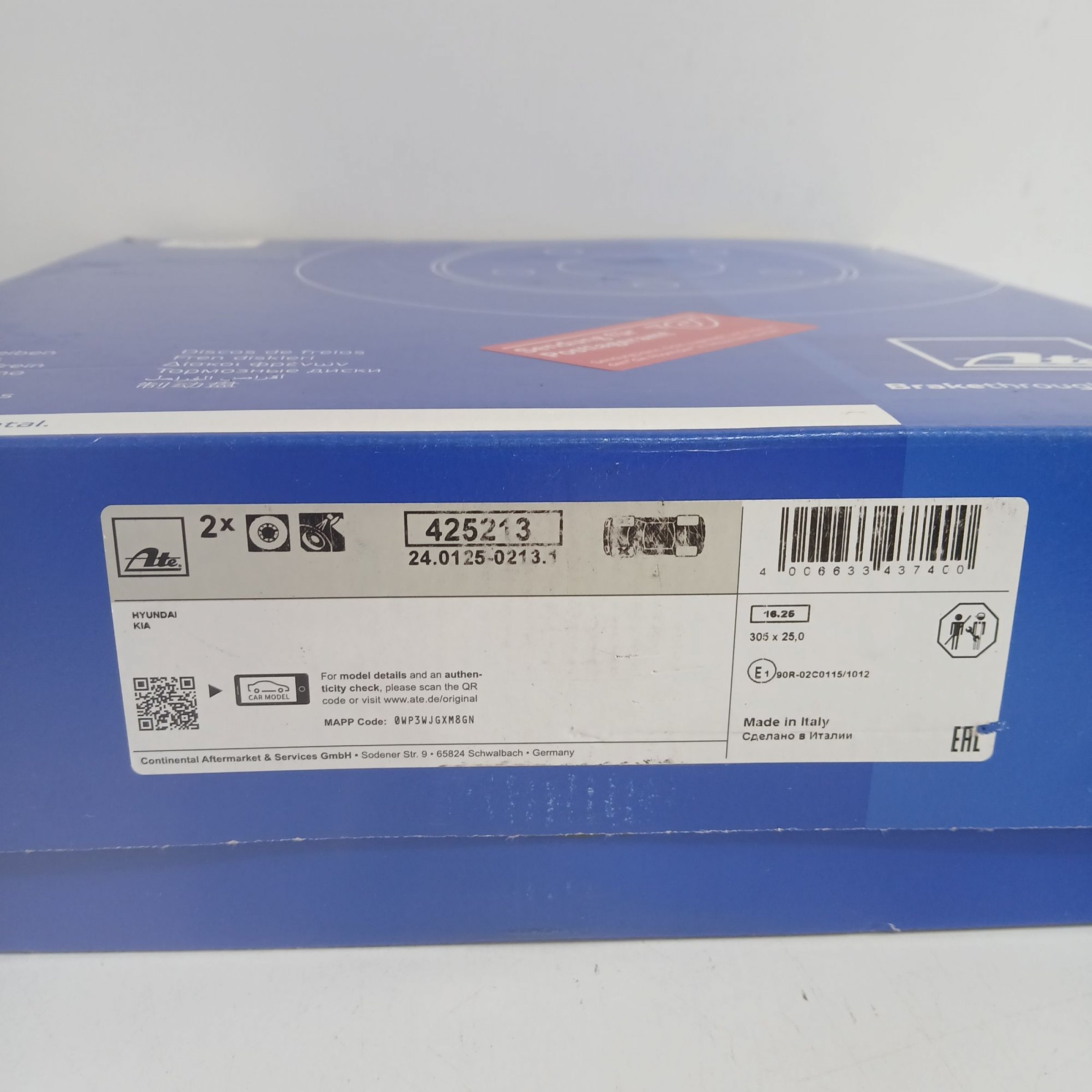 1 Packung Ate Bremsscheiben Hyundai Kia 425213 24.0125-0213.1