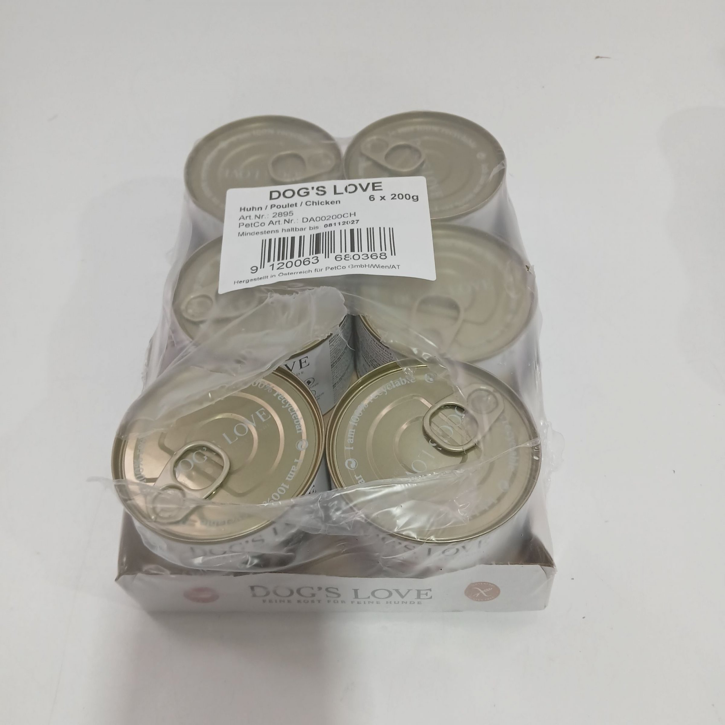 1 Packung Dog's Love Huhn Hundefutter 6x200g