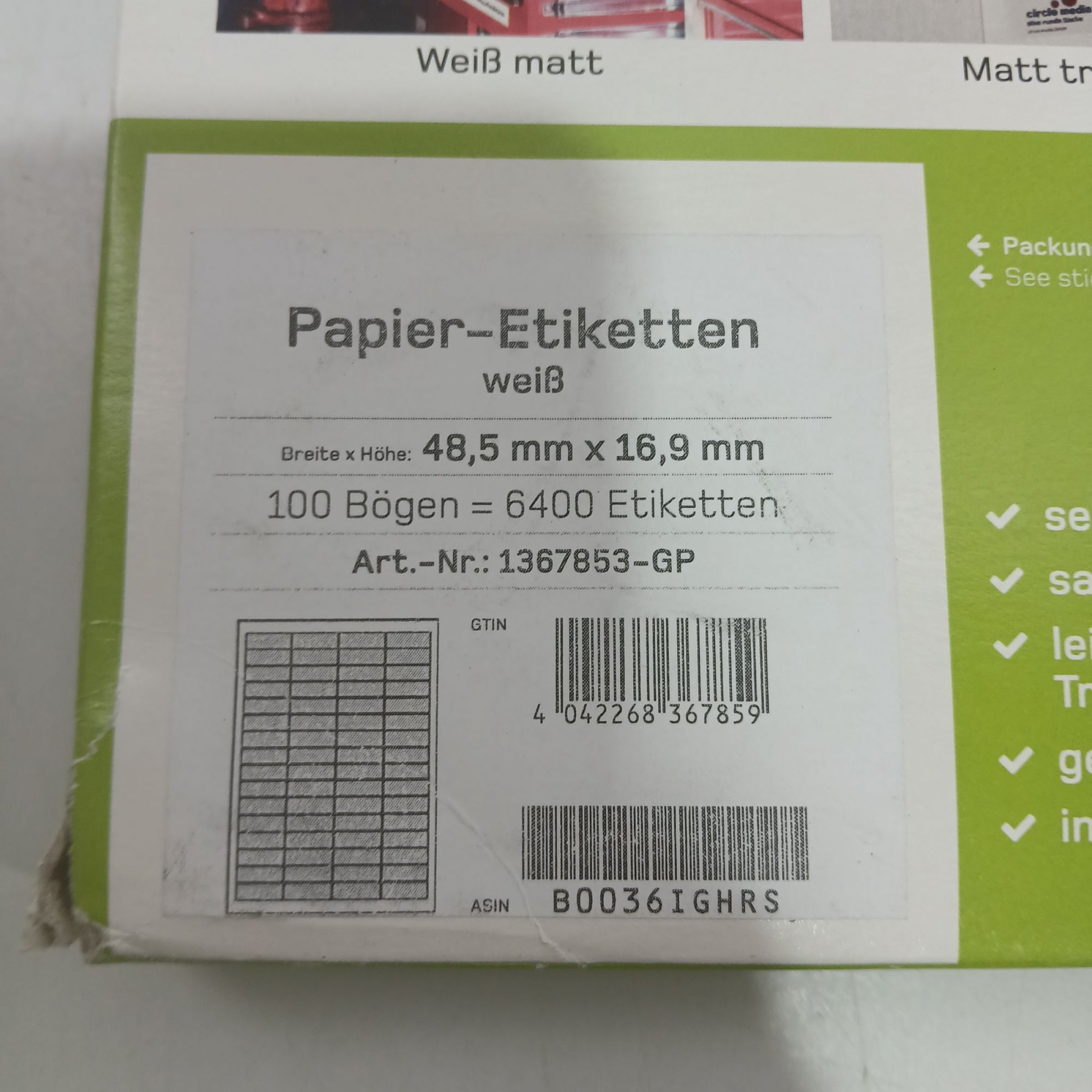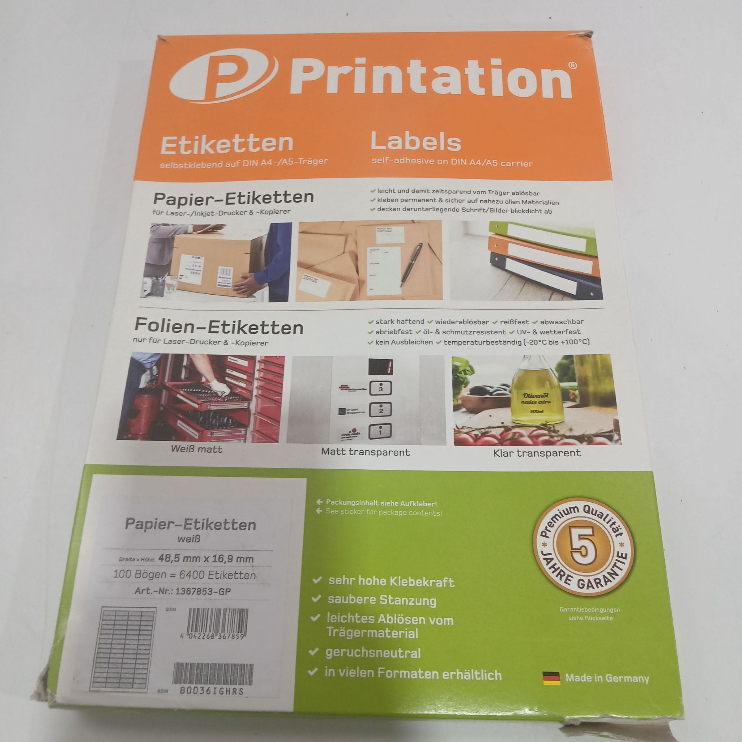 1 Packung Printation Papier-Etiketten Weiß 100 Bögen