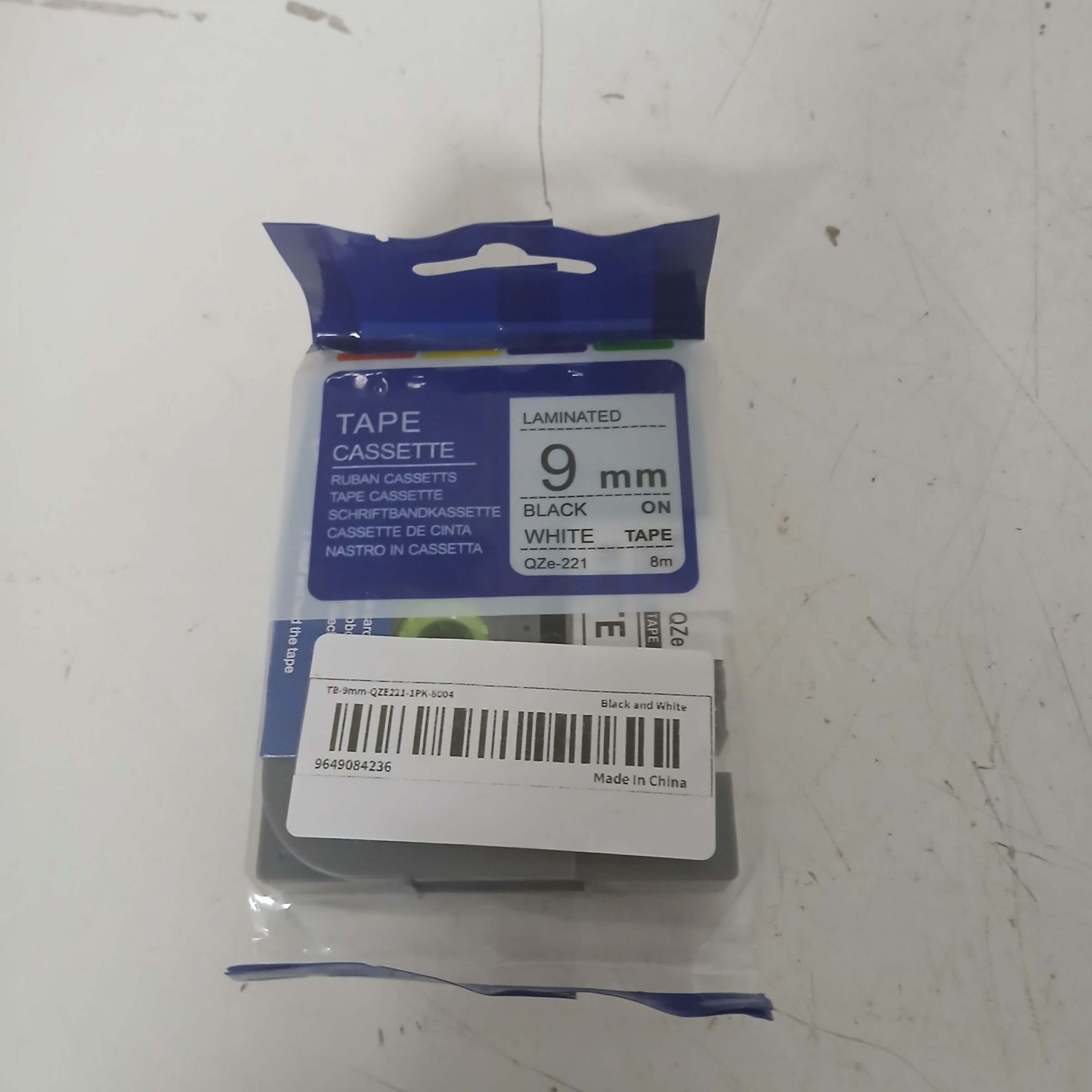 1 Stk. Tape Cassette 9mm Black on White 8m