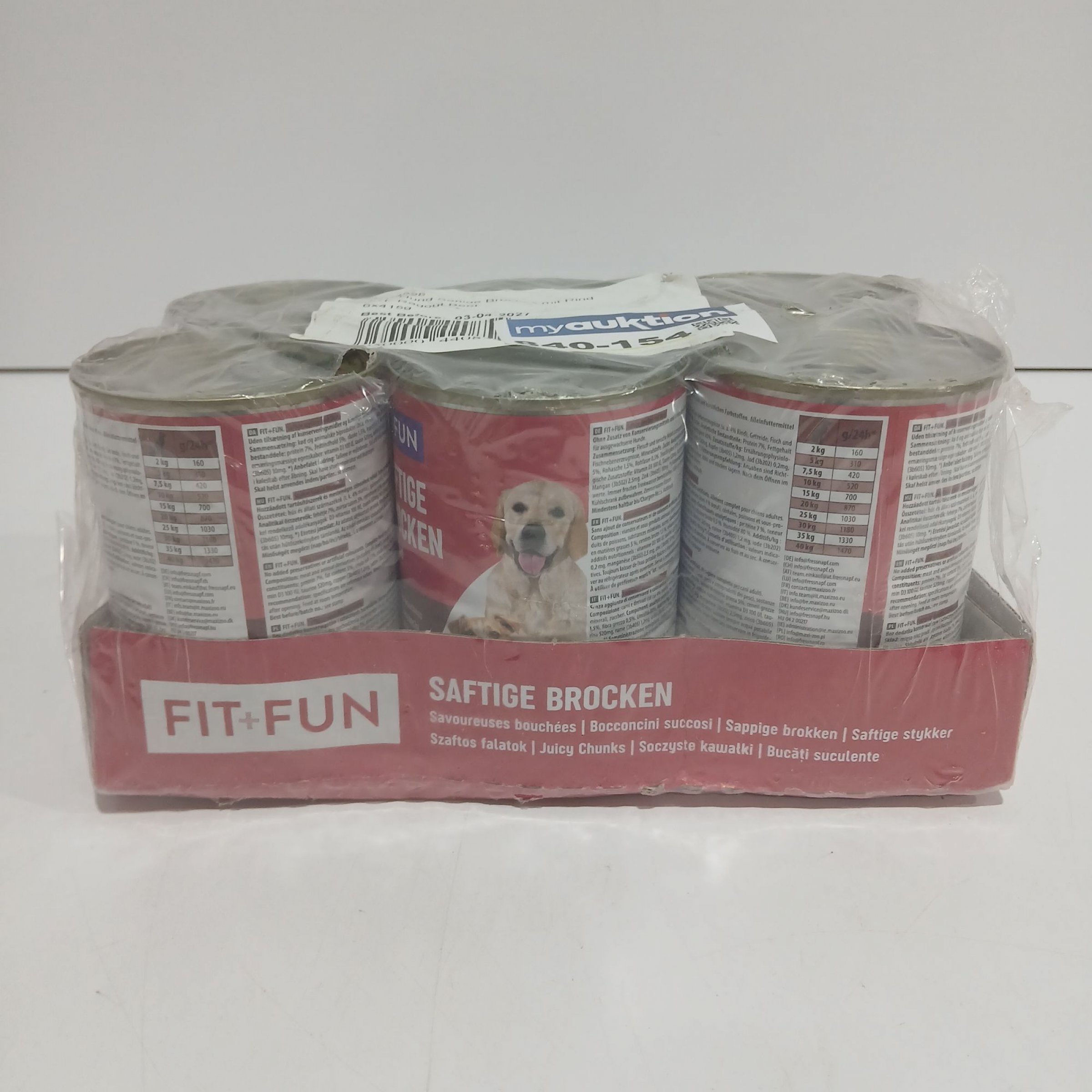 1 Packung Fit+Fun Hund Saftige Brocken mit Rind 6x415g