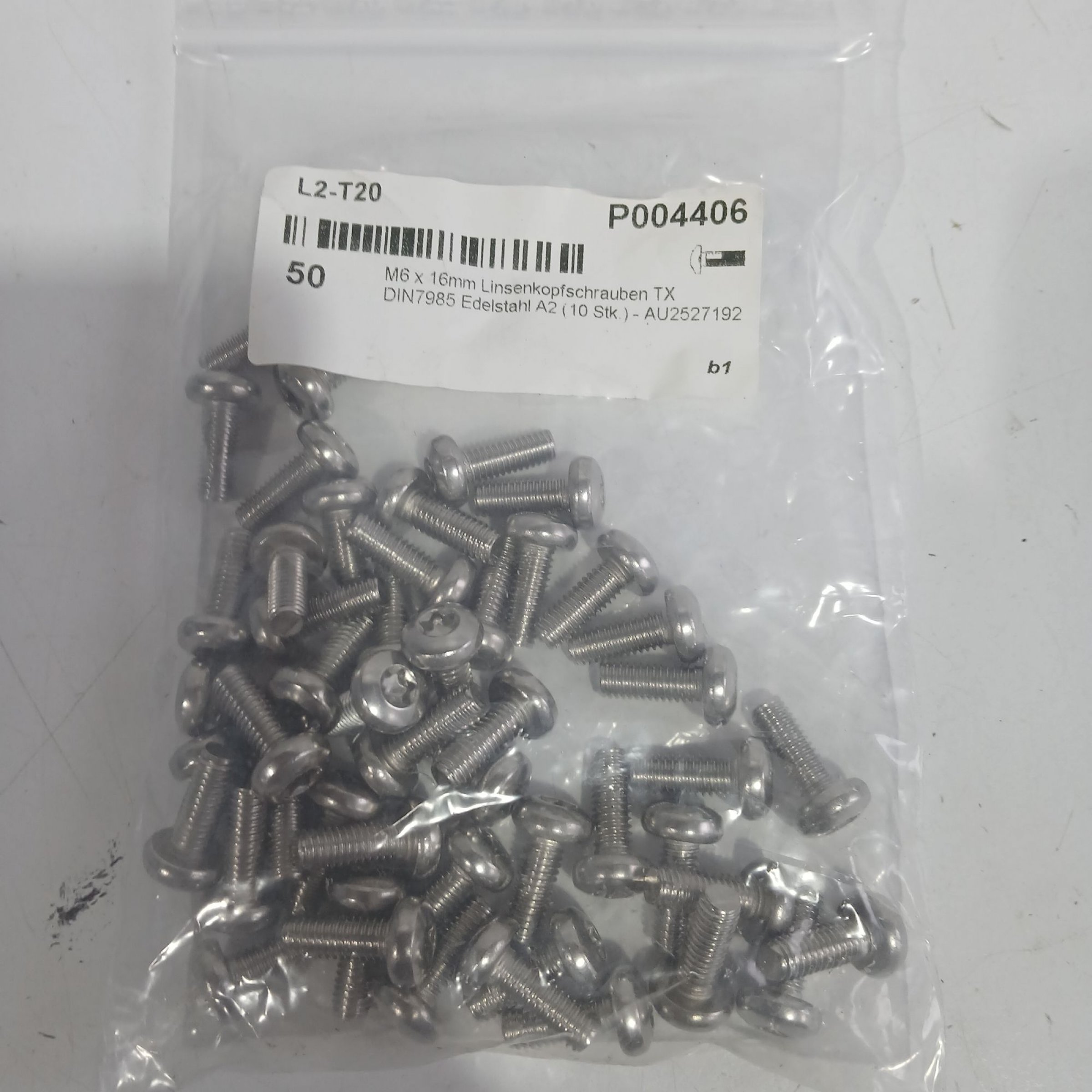 1 Packung M6x16mm Linsenkopfschrauben TX DIN7985 A2 50Stk
