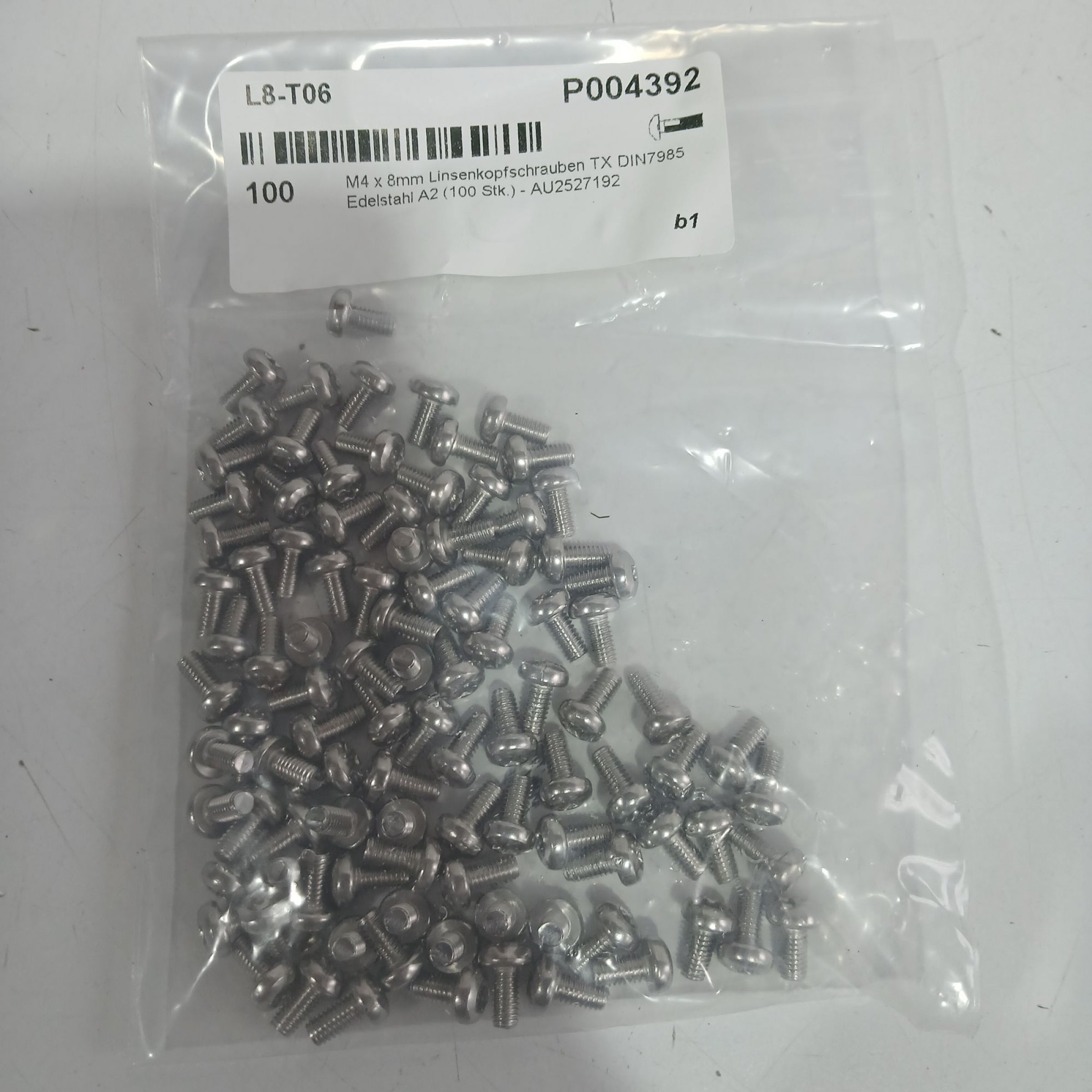 1 Packung M4x8mm Linsenkopfschrauben TX DIN7985 A2