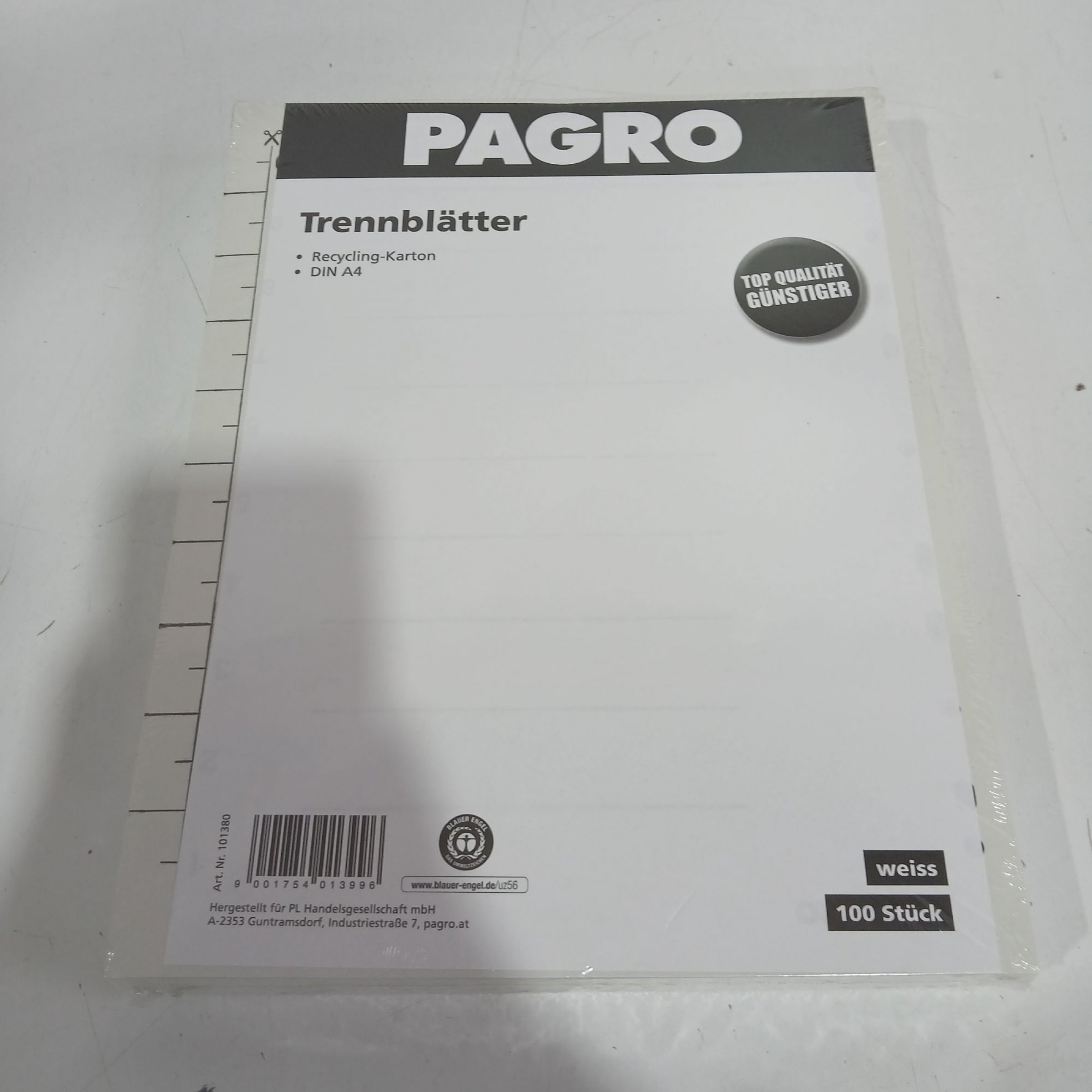 1 Packung Pagro Trennblätter A4 weiß 100Stk