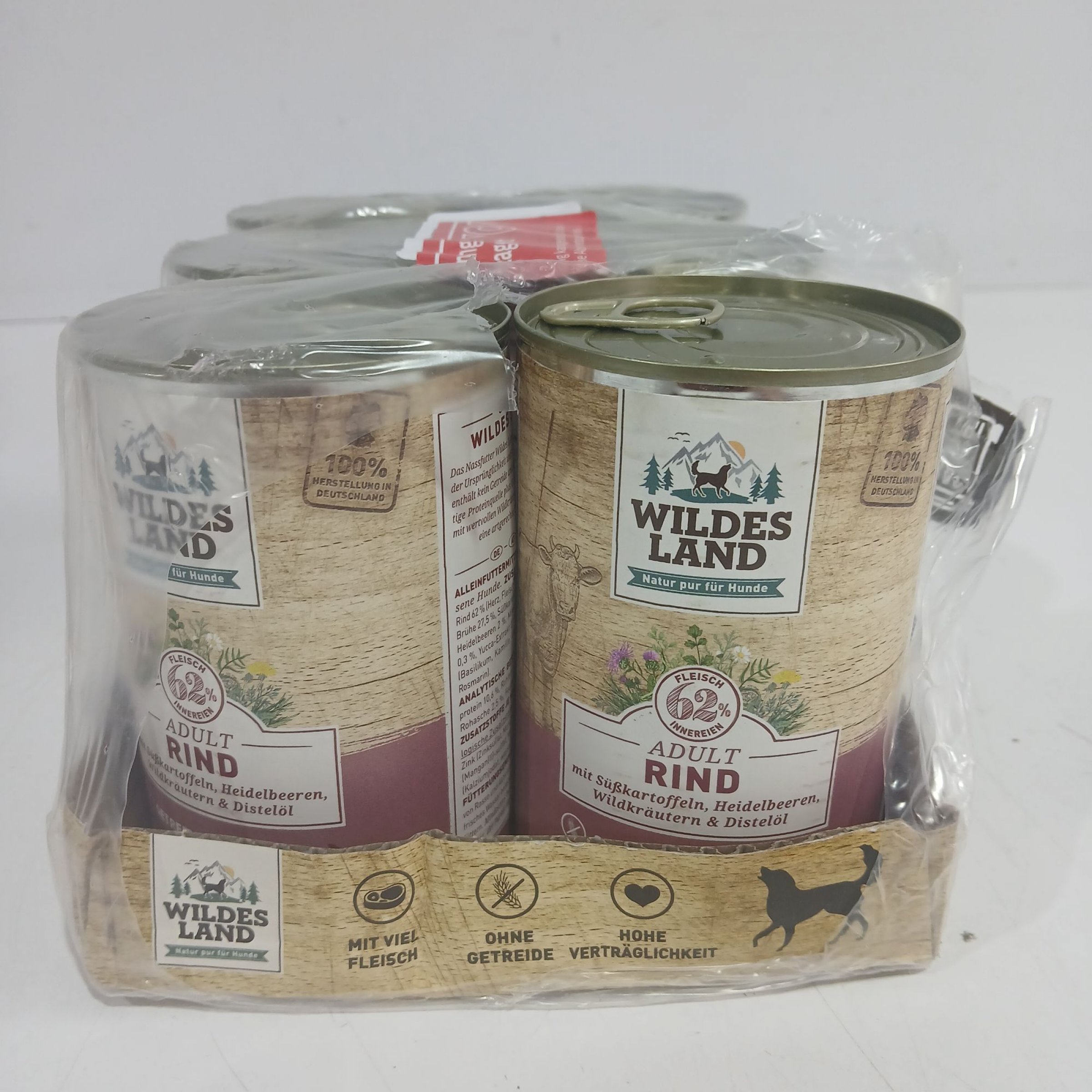 1 Packung Wildes Land Adult Hundefutter Rind mit Süßkartoffeln, Heidelbeeren, Wildkräutern & Distelöl 6x400g