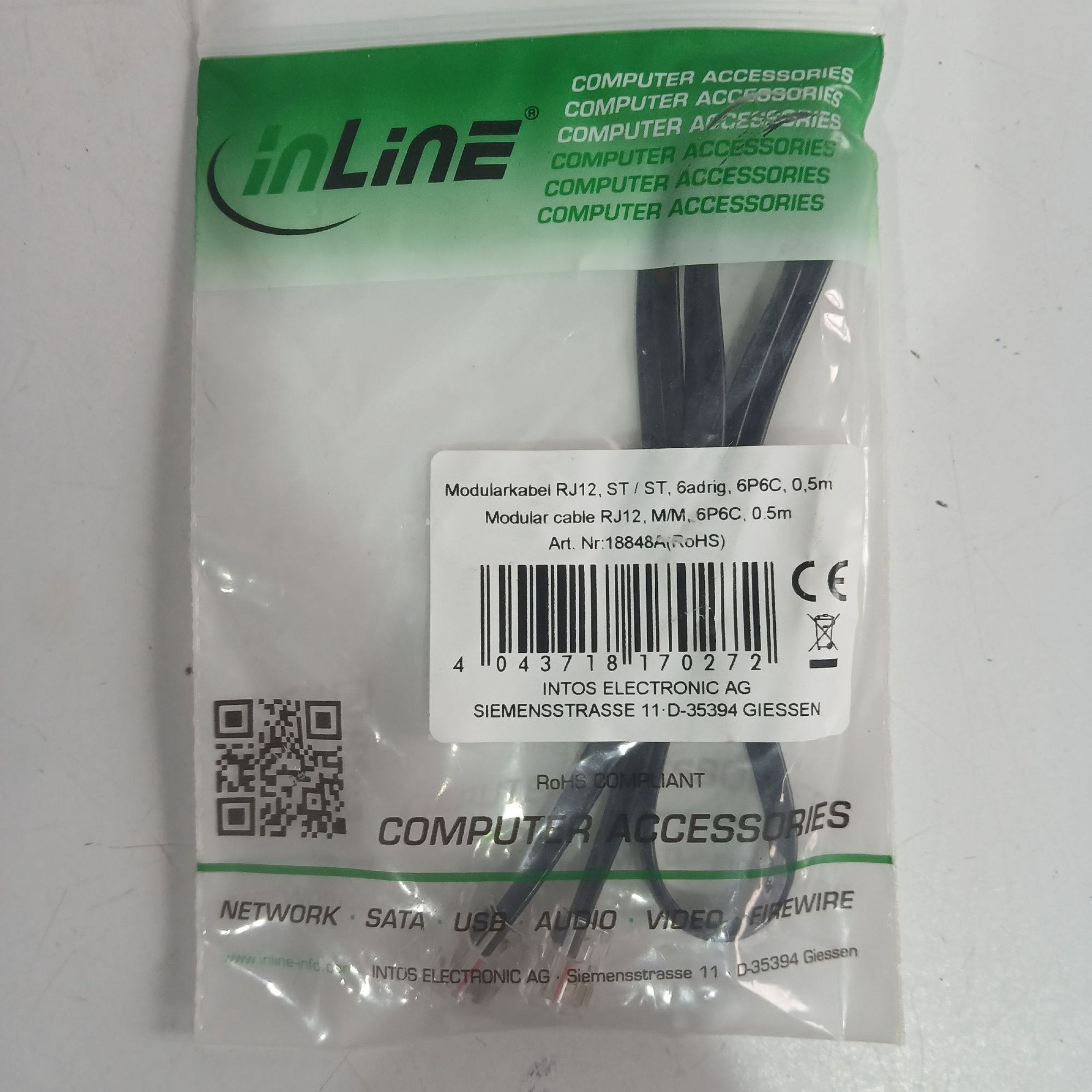 1 Stk. InLine Computee Accessories Modularkabel RJ12 0,5m