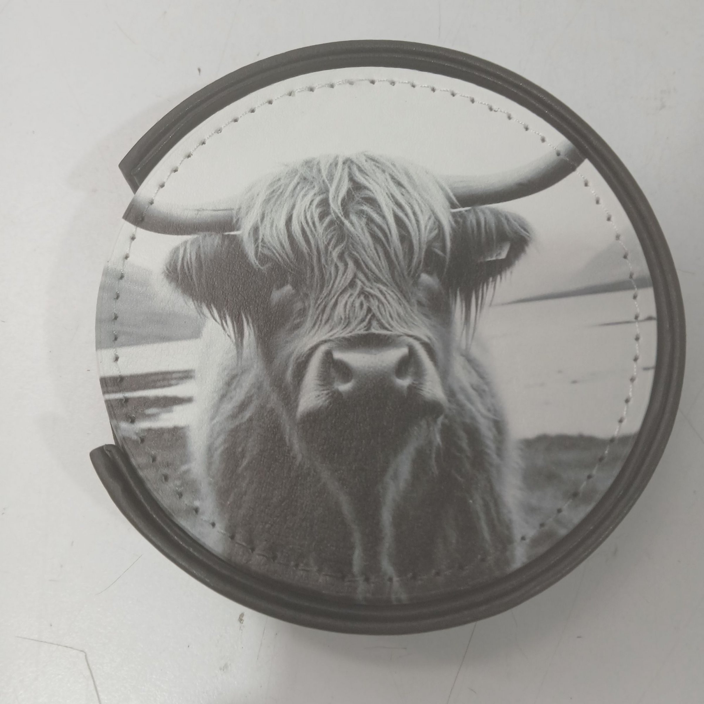 1 Stk. Highland Cow Round Coasters Mug Mat 6 Pack Leather