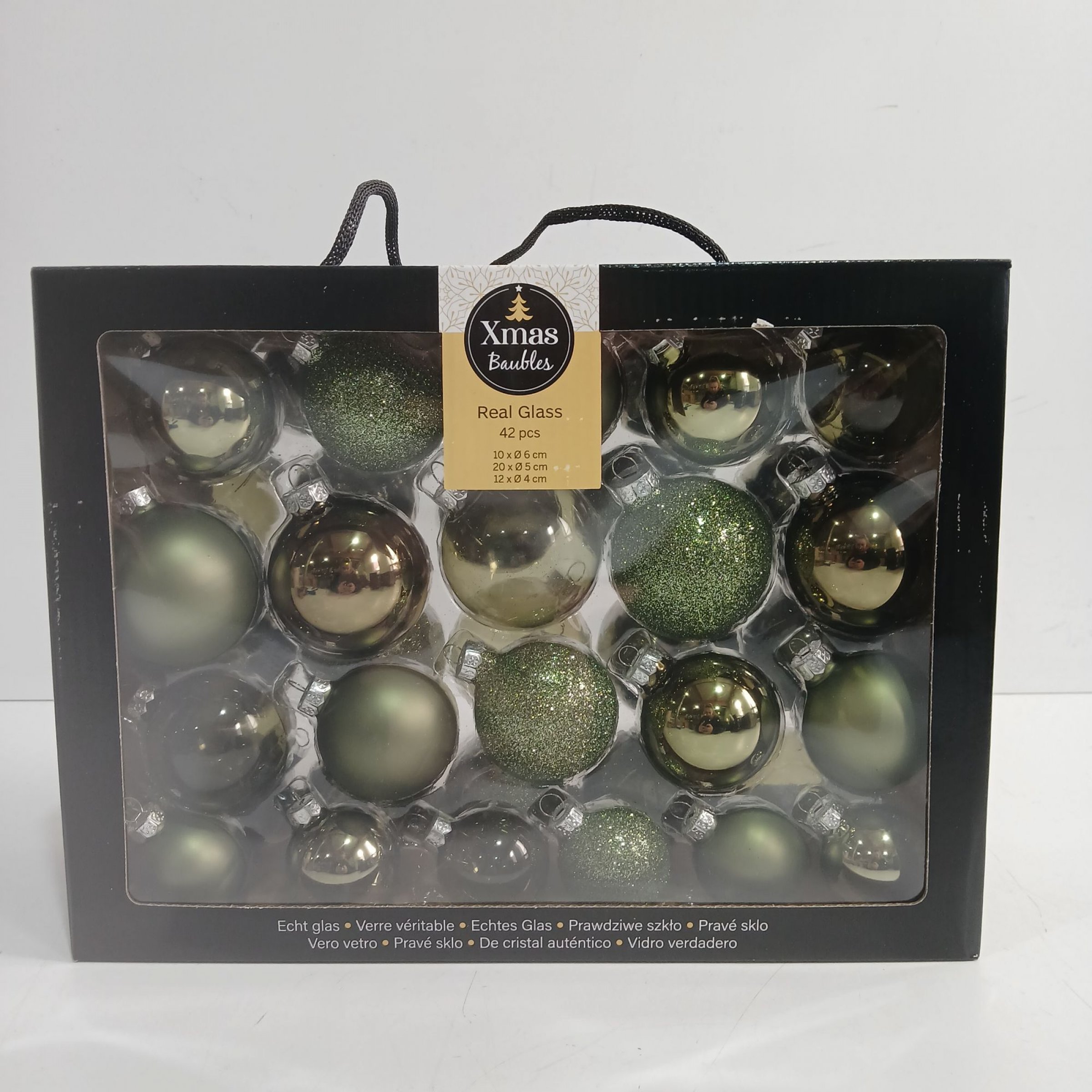 1 Packung Xmas Baubles Real Glass 42Pcs grün