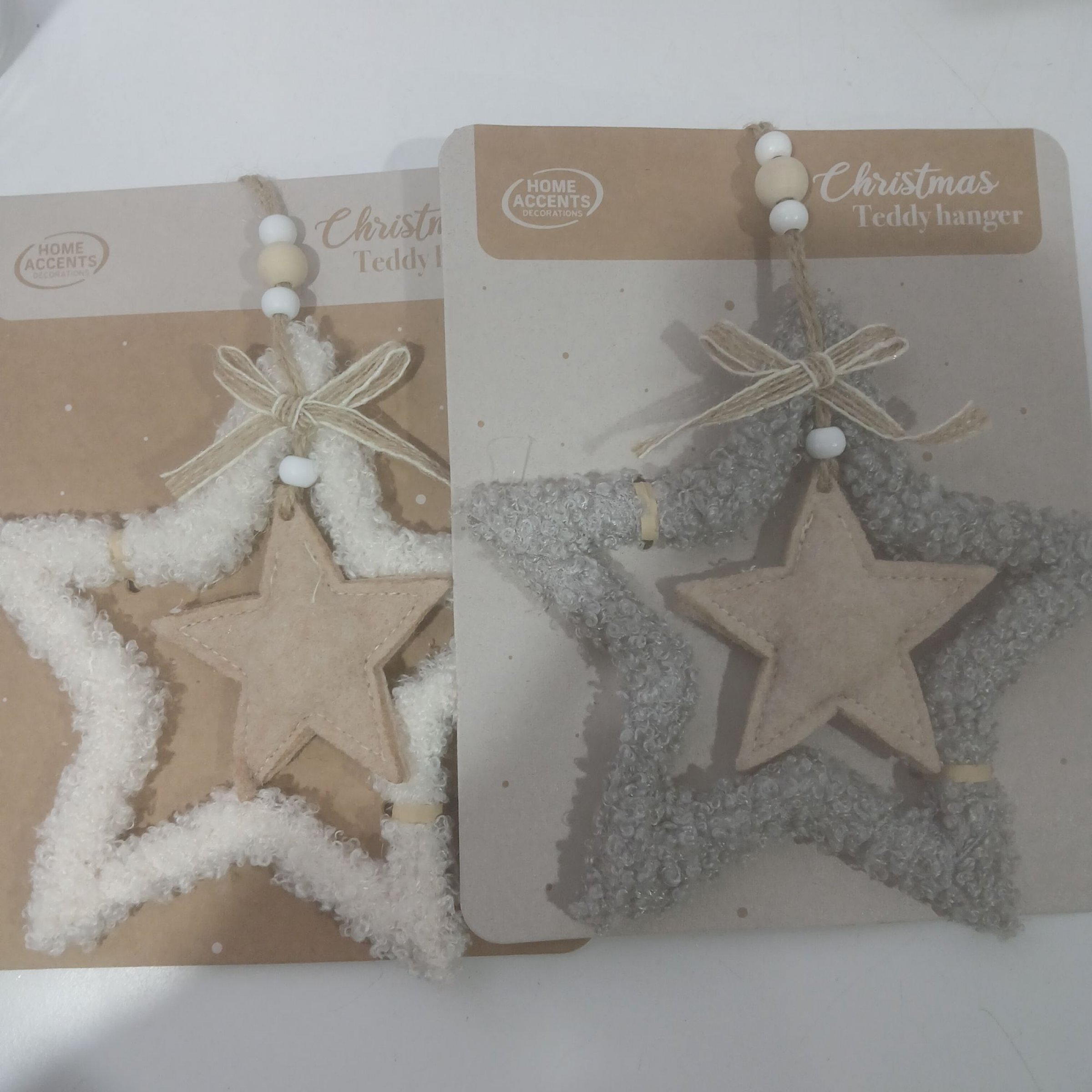 1 Set Christmas Teddy Hänger Stern weiß & grau