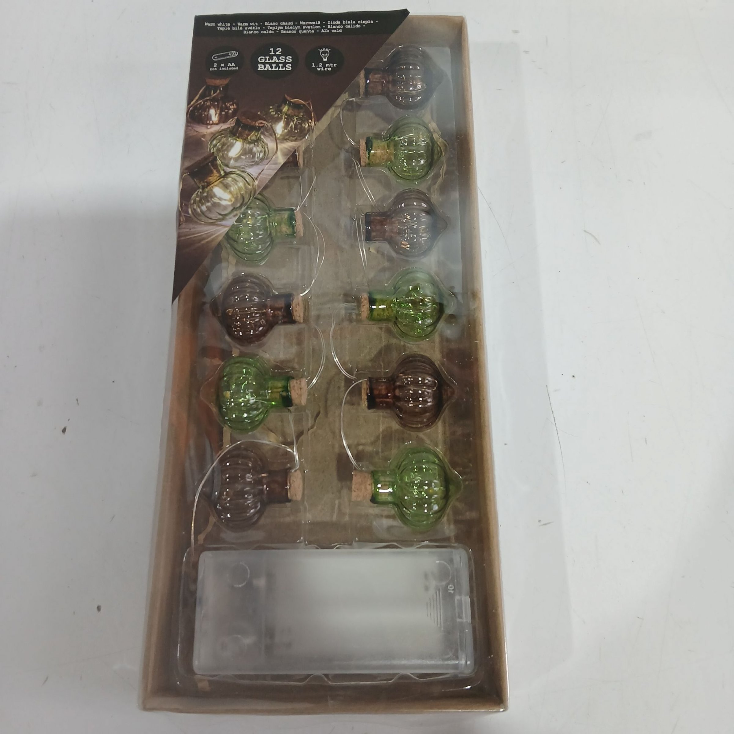 1 Stk. 12 Glass Balls Lichterkette grün/braun