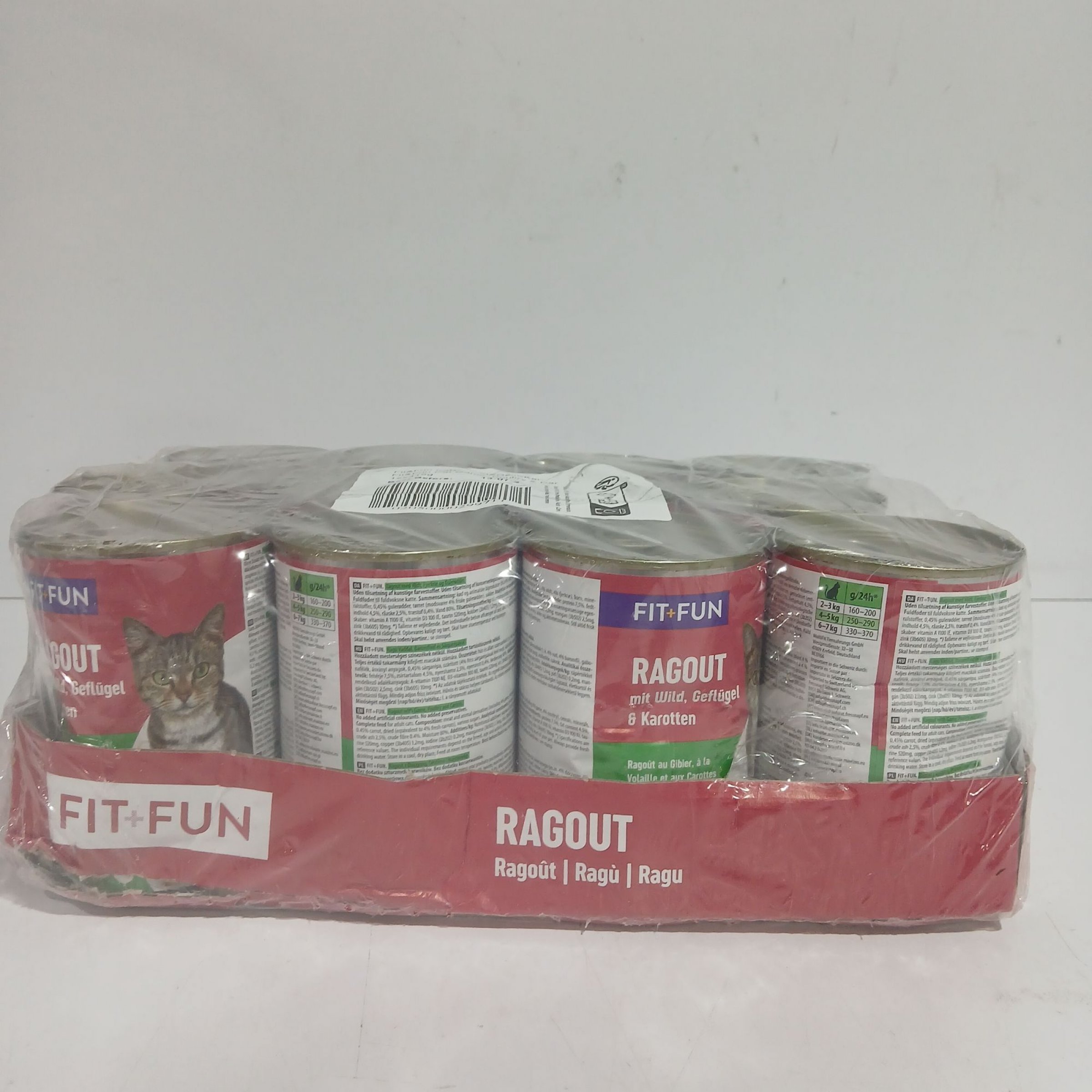 1 Packung Fit+Fun Katzenfutter Wild&Geflügel&Karotten 12x415g