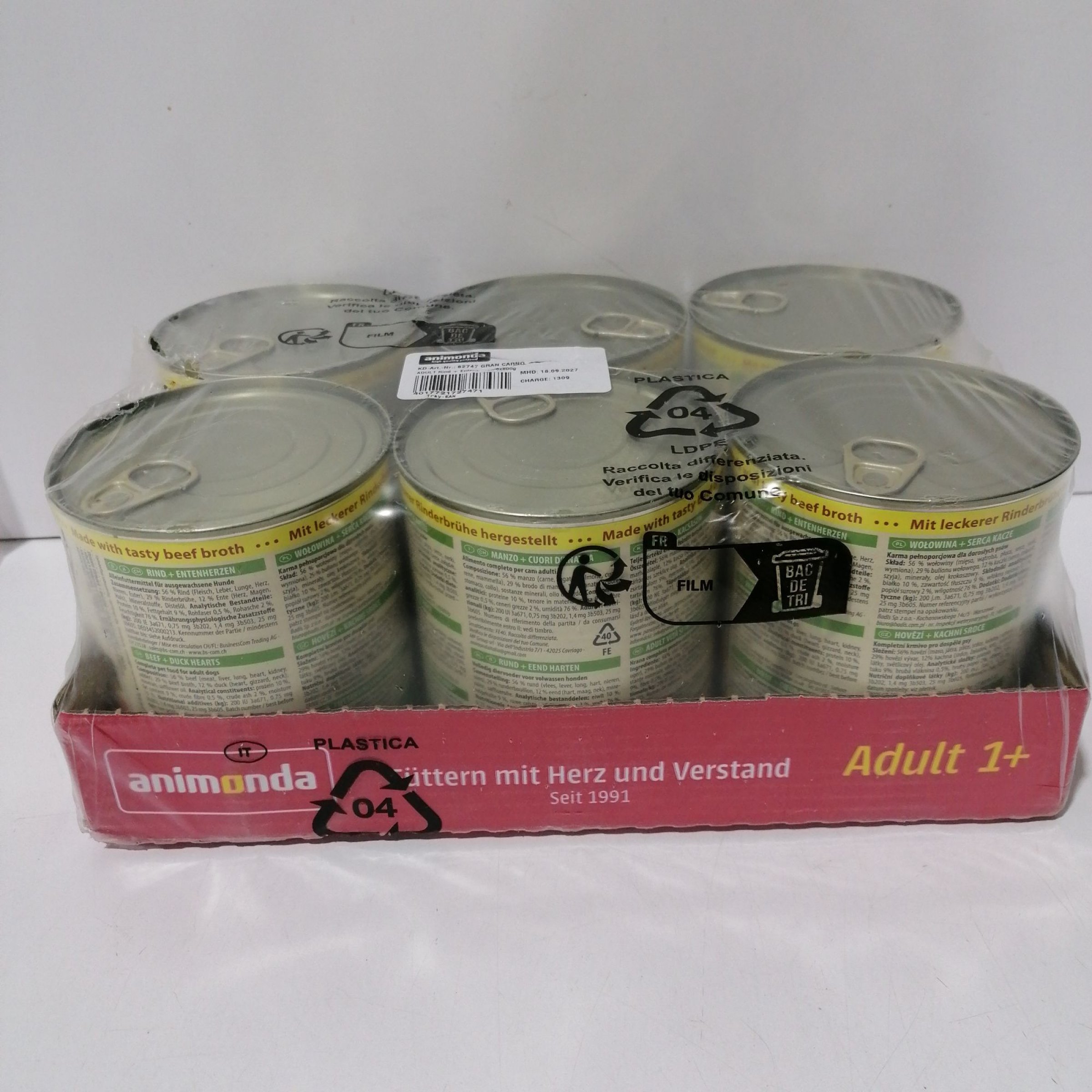 1 Packung Animonda Gran Carno Adult Rind + Entenherzen 6×800g