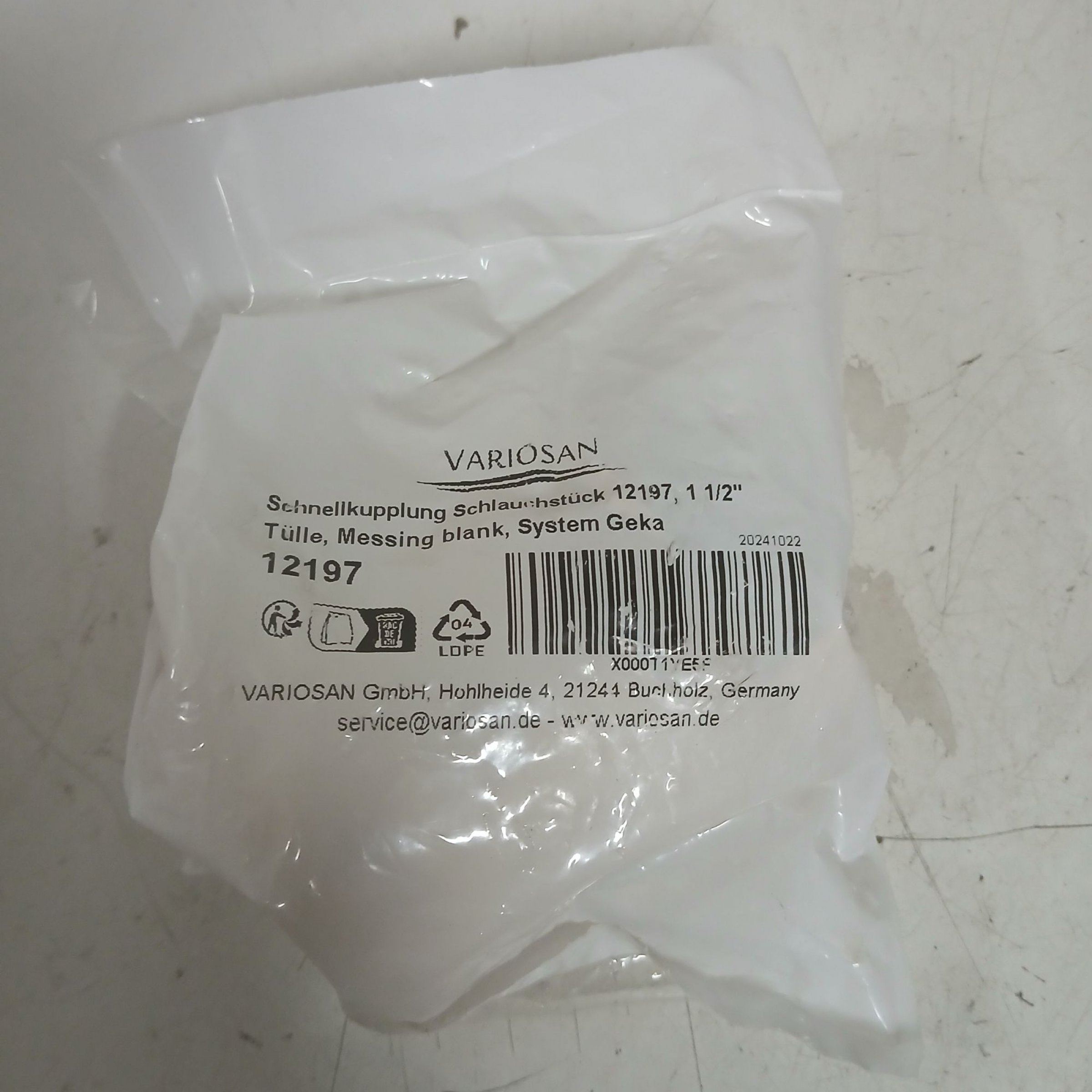 1 Stk. Variosan Schnellkupplung Schlauchstück 12197 1/2"