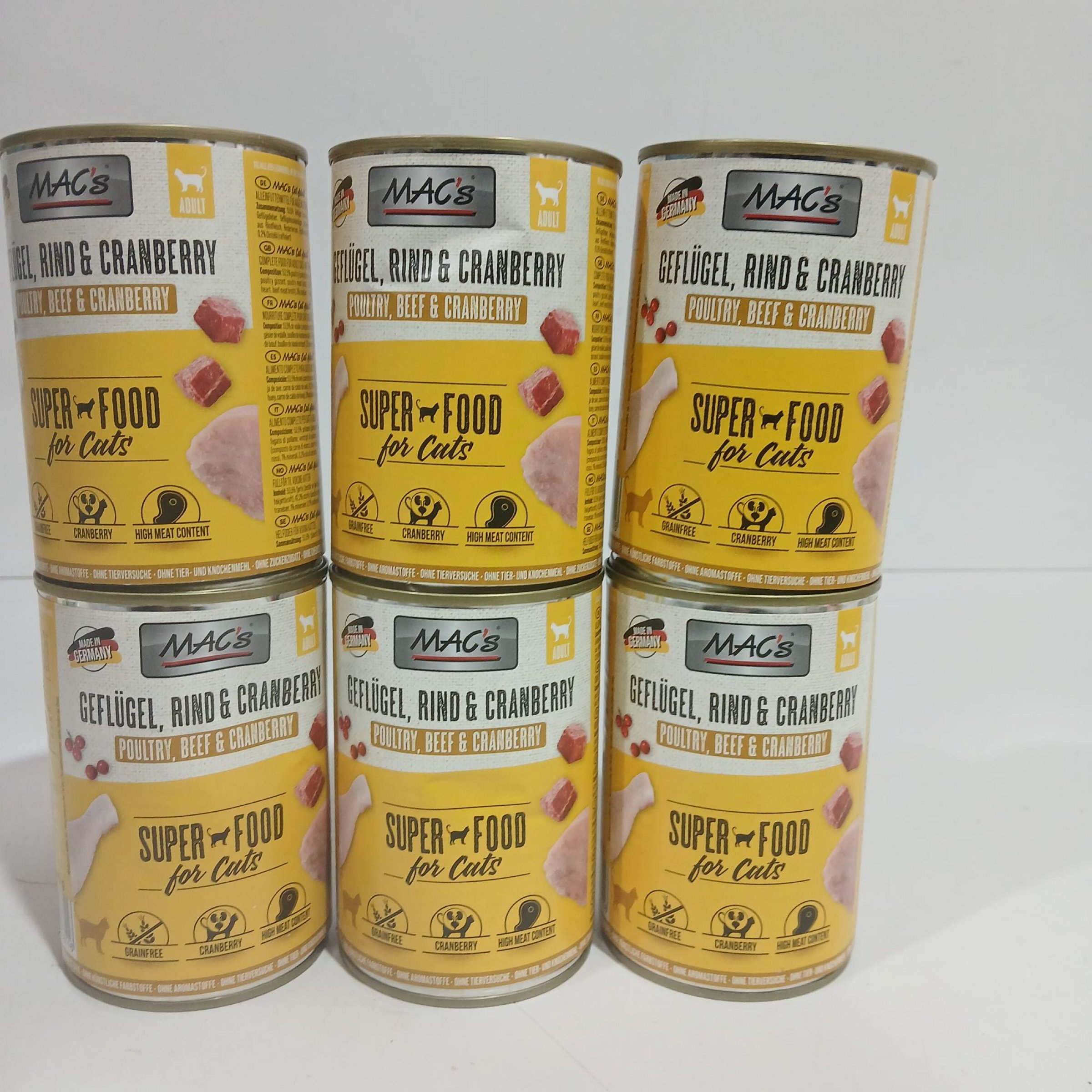 6 Stk. Macs Adult Katzenfutter Geflügel, Rind & Cranberry je 400g