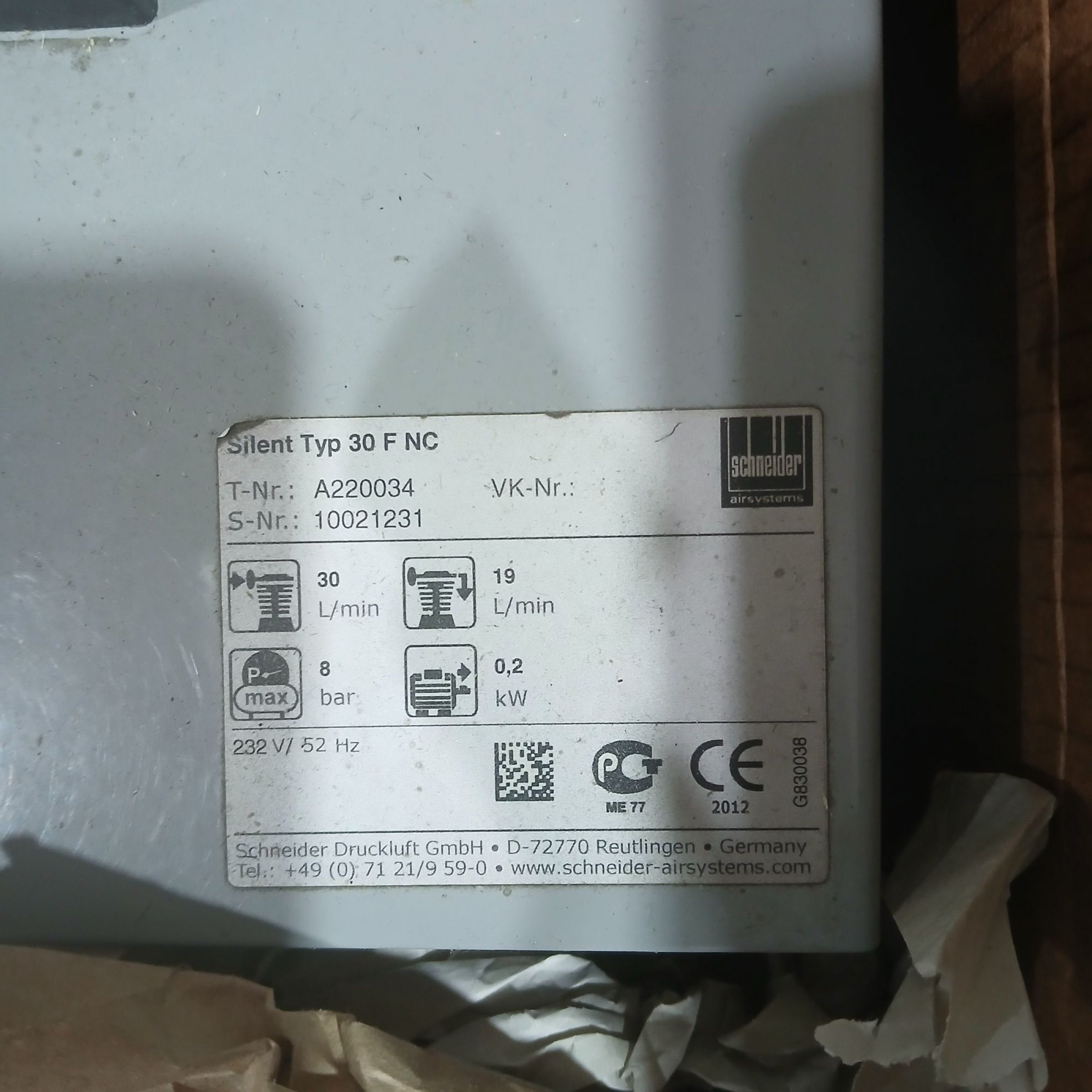 1 Stk. Schneider SilentMaster SEM 30-8-4 W Kompressor Nº A 333 005 Typ 30 F NC