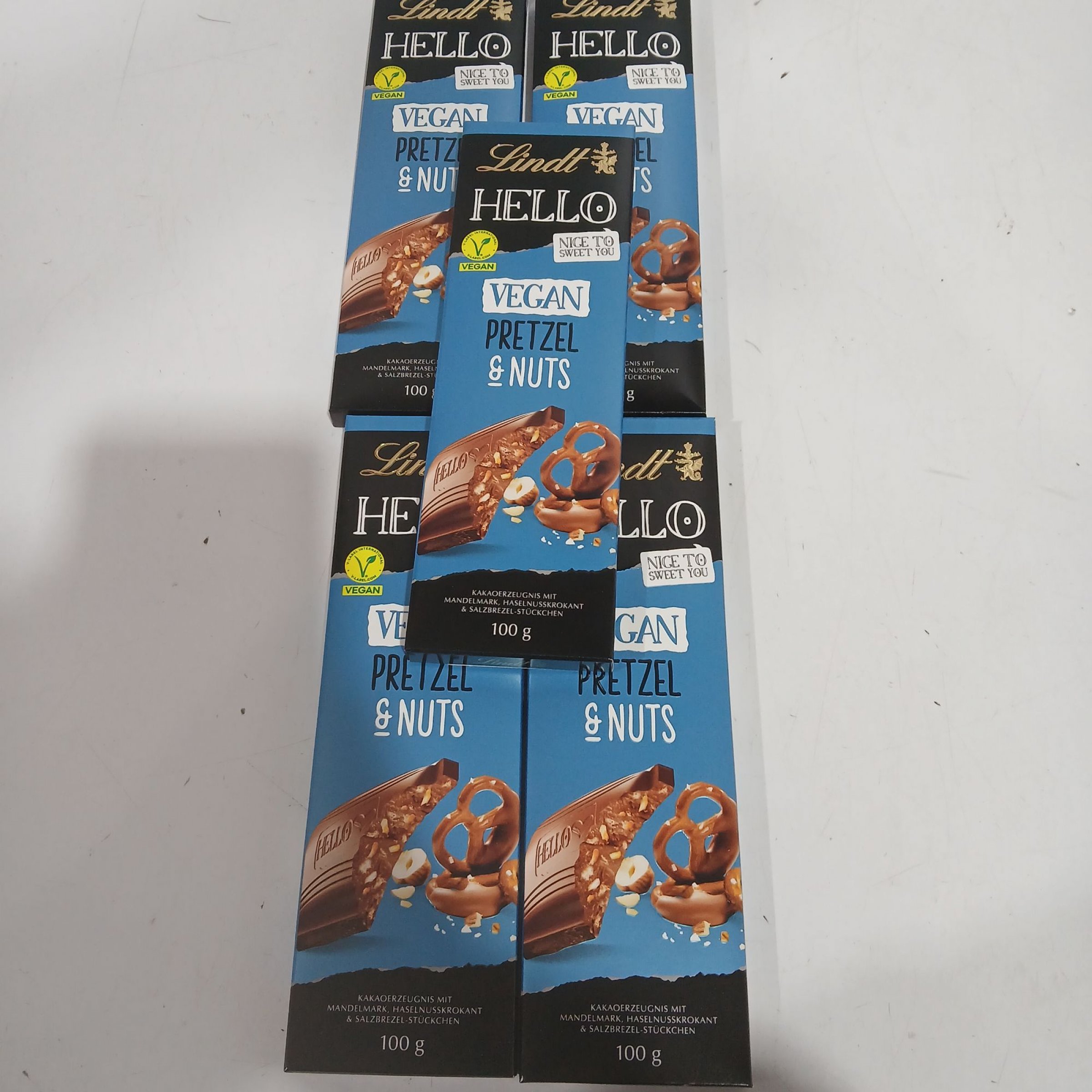 5 Stk. Lindt Hello Vegan Pretzel & Nuts je 100g