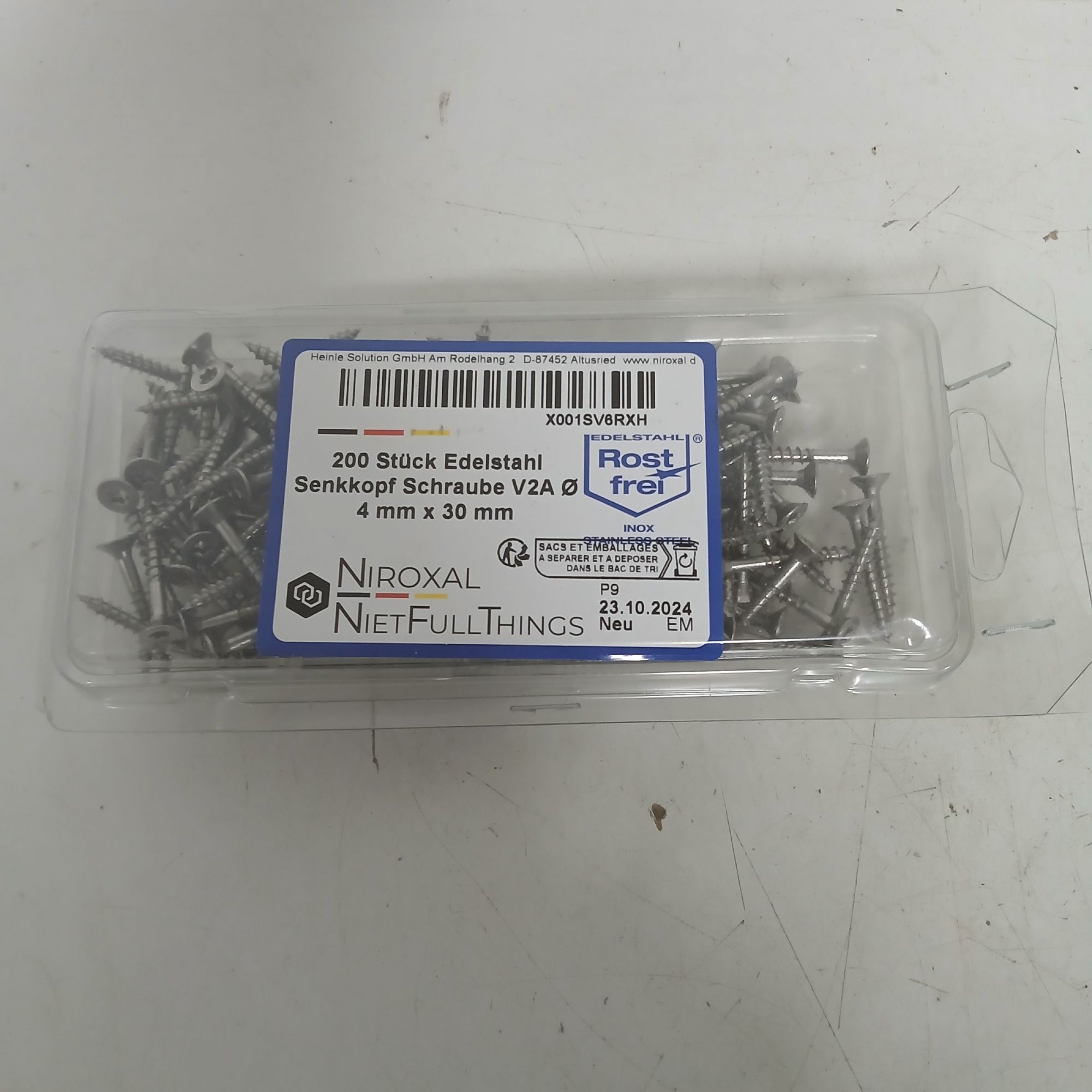 1 Packung Niroxal 200 Stück Edelstahl Senkkopf Schraube V2A 4mm x30mm