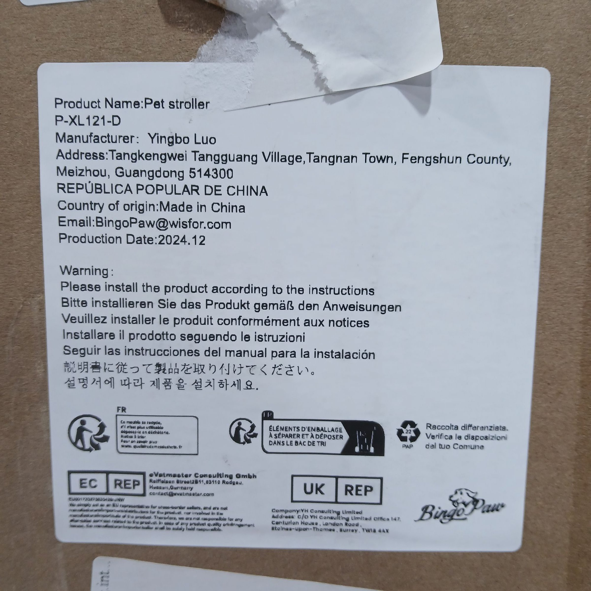 1 Stk. Bingo Paw Pet Stroller P-XL121-D