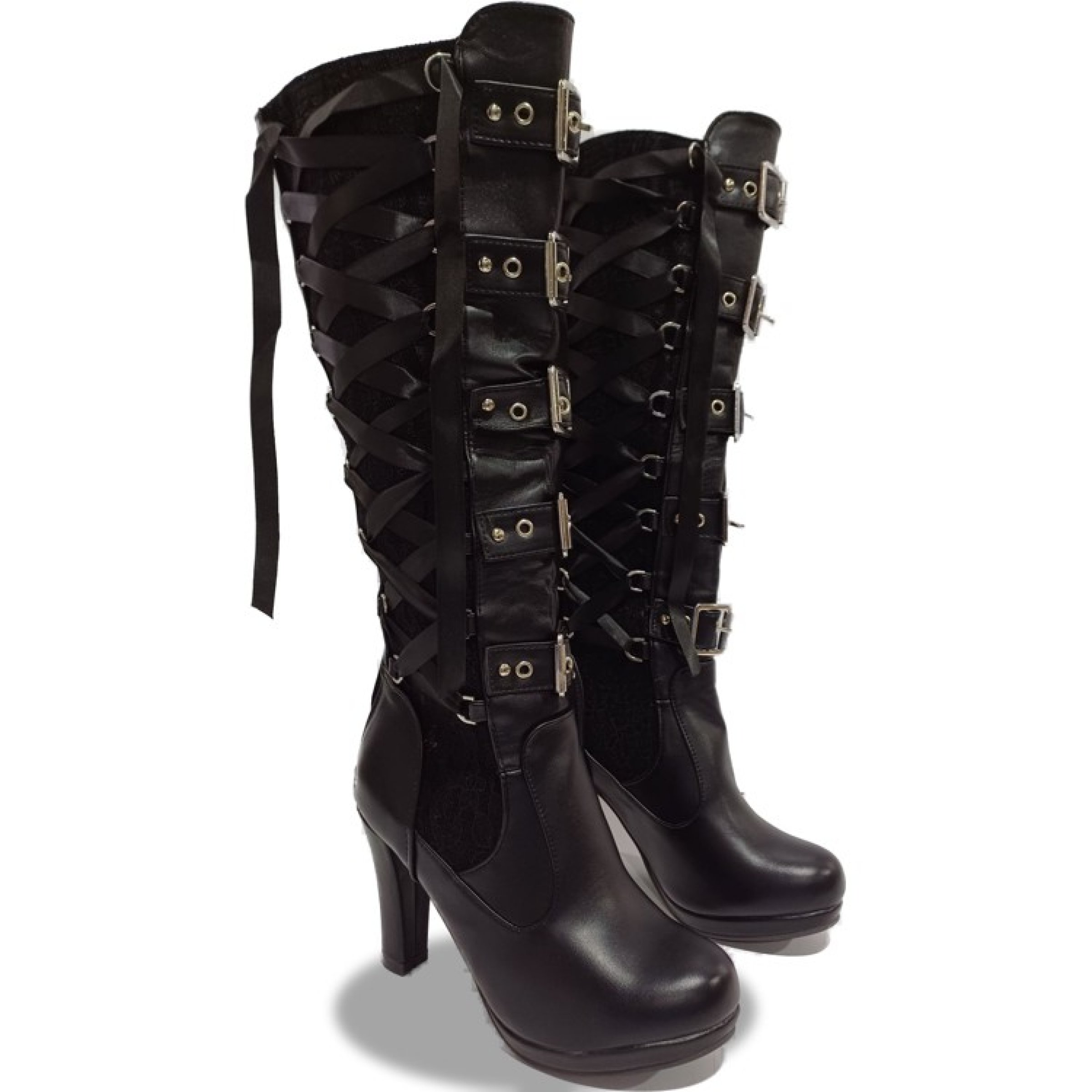 Gr. 38, PU-Leder mit Schnürung, Kniehöhe, Plateausohle, schwarz