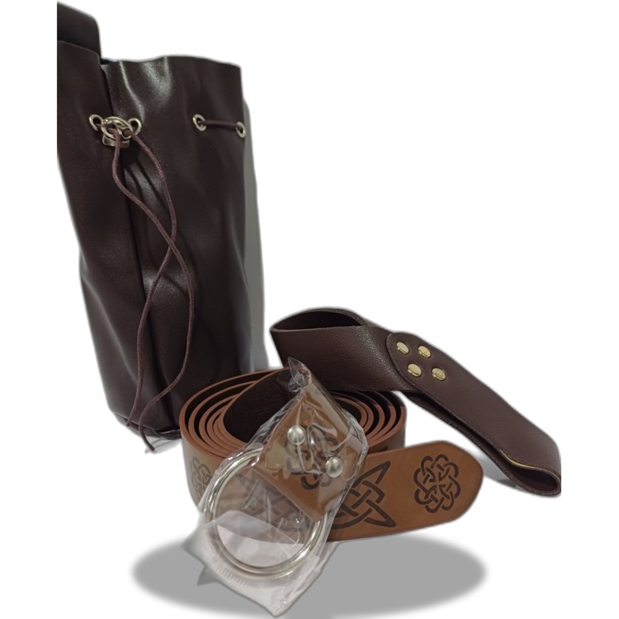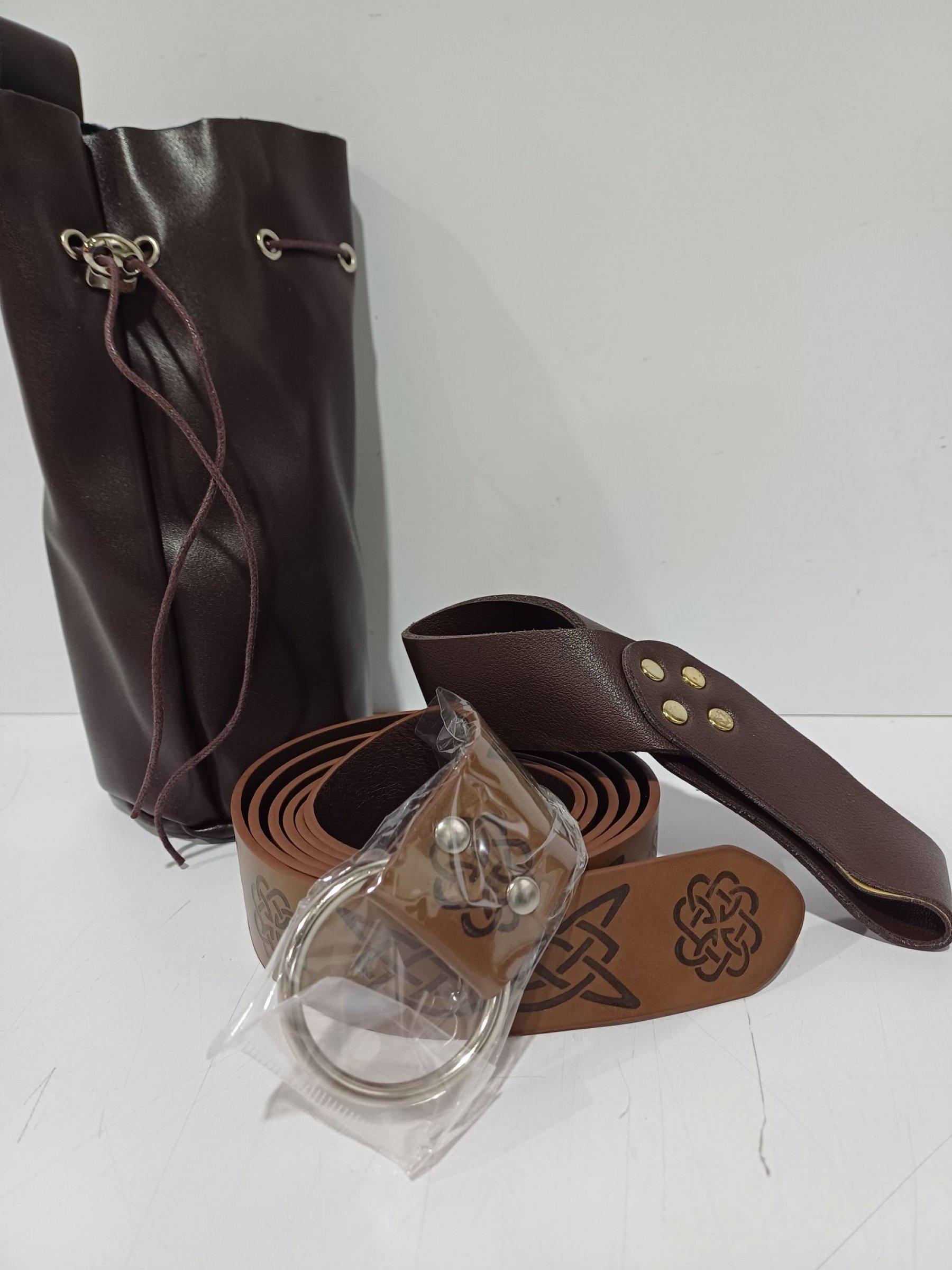 1 Stk. Ledergürtel, ca.164cm lang, braun, geprägtes Knotenmuster, Ledertasche, Schwerthalter
