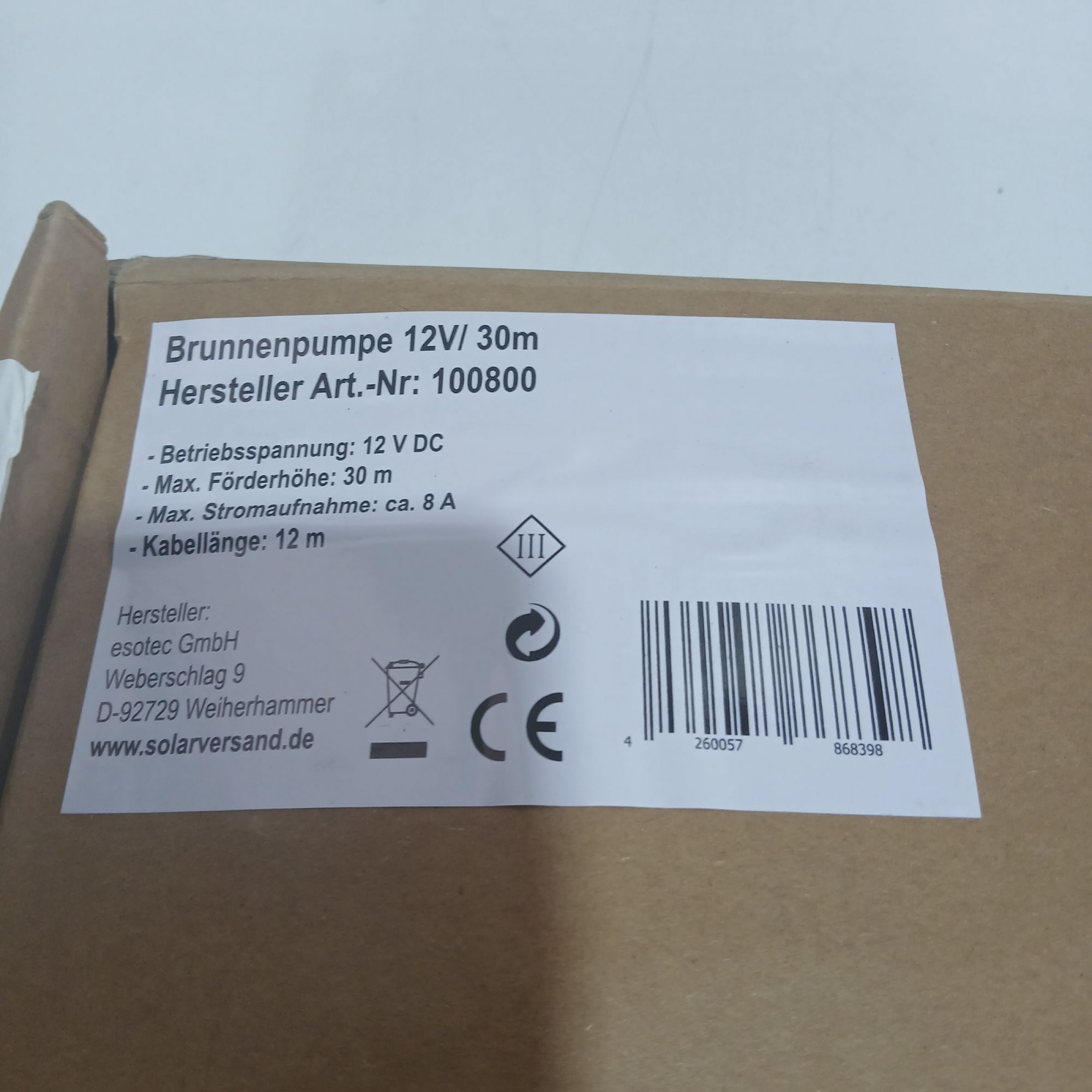1 Stk. Brunnenpumpe 12V/30m 100800
