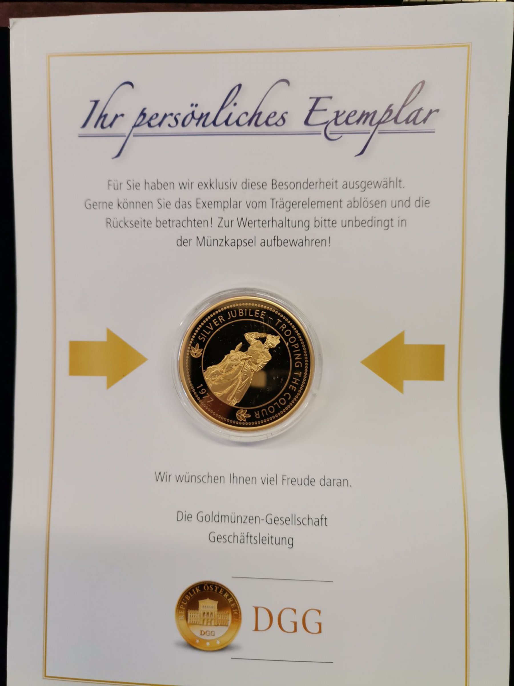 1 Stk. DGG Silver Jubilee Trooping the colour Münze 1977