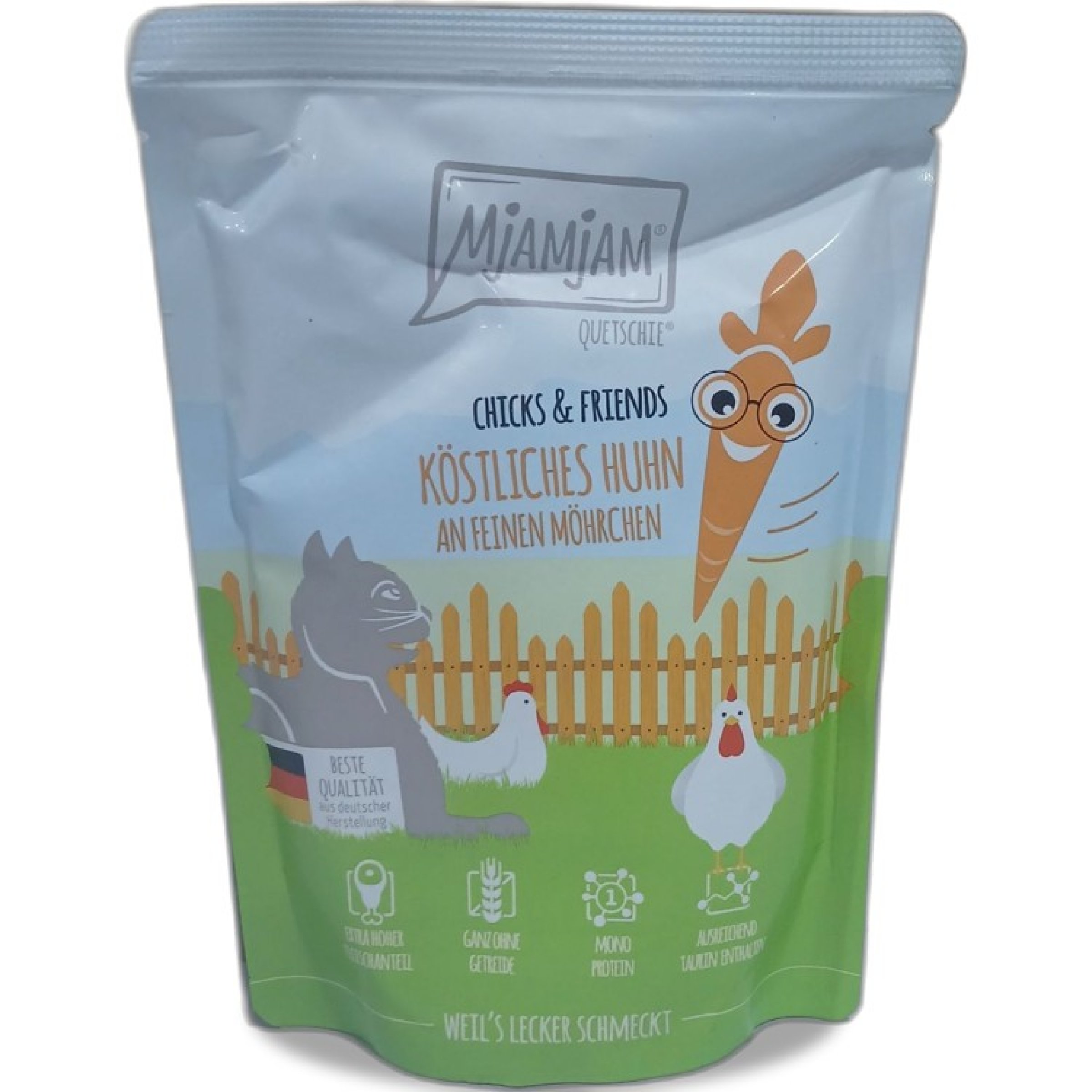 1 Packung Mjamjam Katzenfutter köstliches Huhn an feinen Möhrchen 6x300g