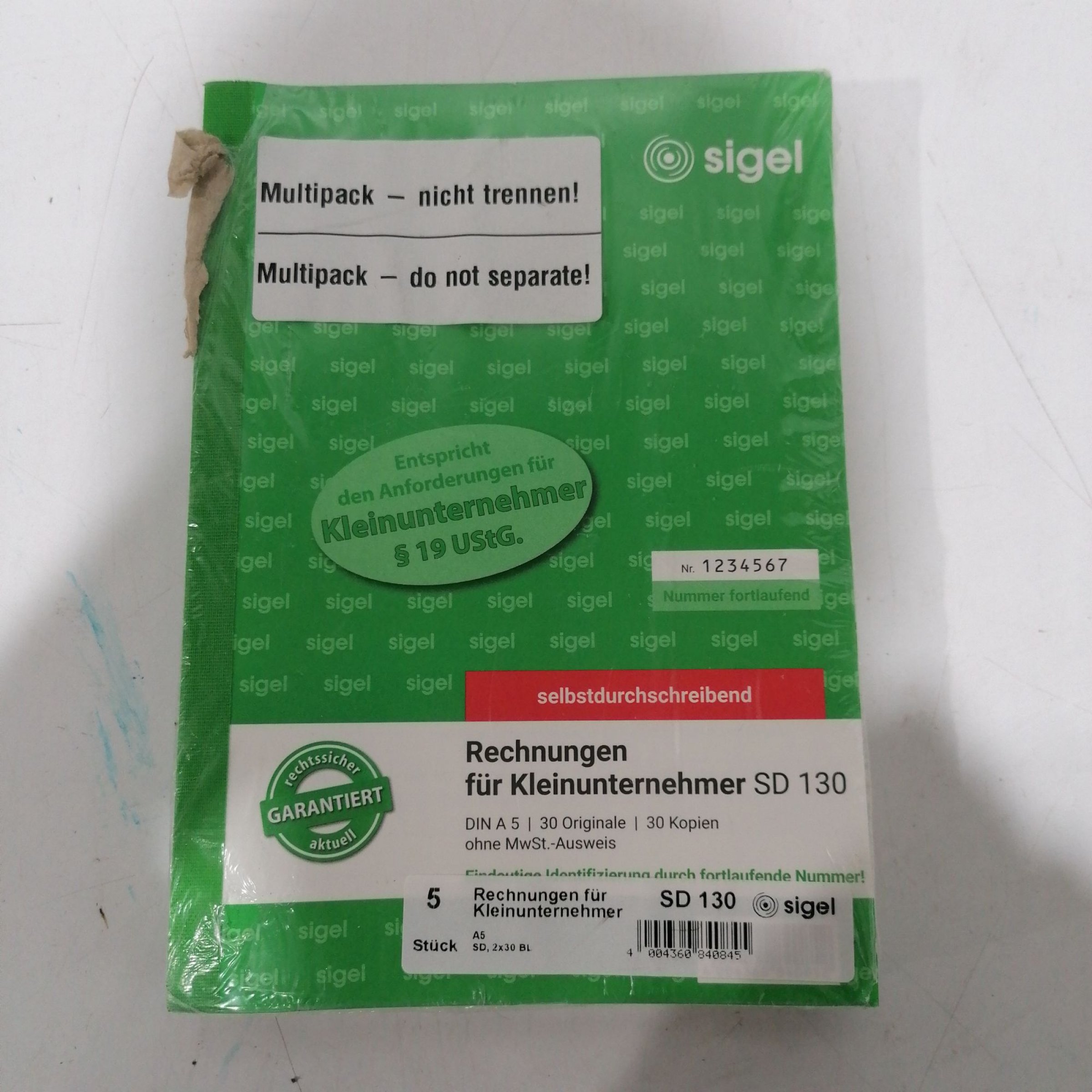 1 Packung Sigel Rechnungen für Kleinunternehmer A5