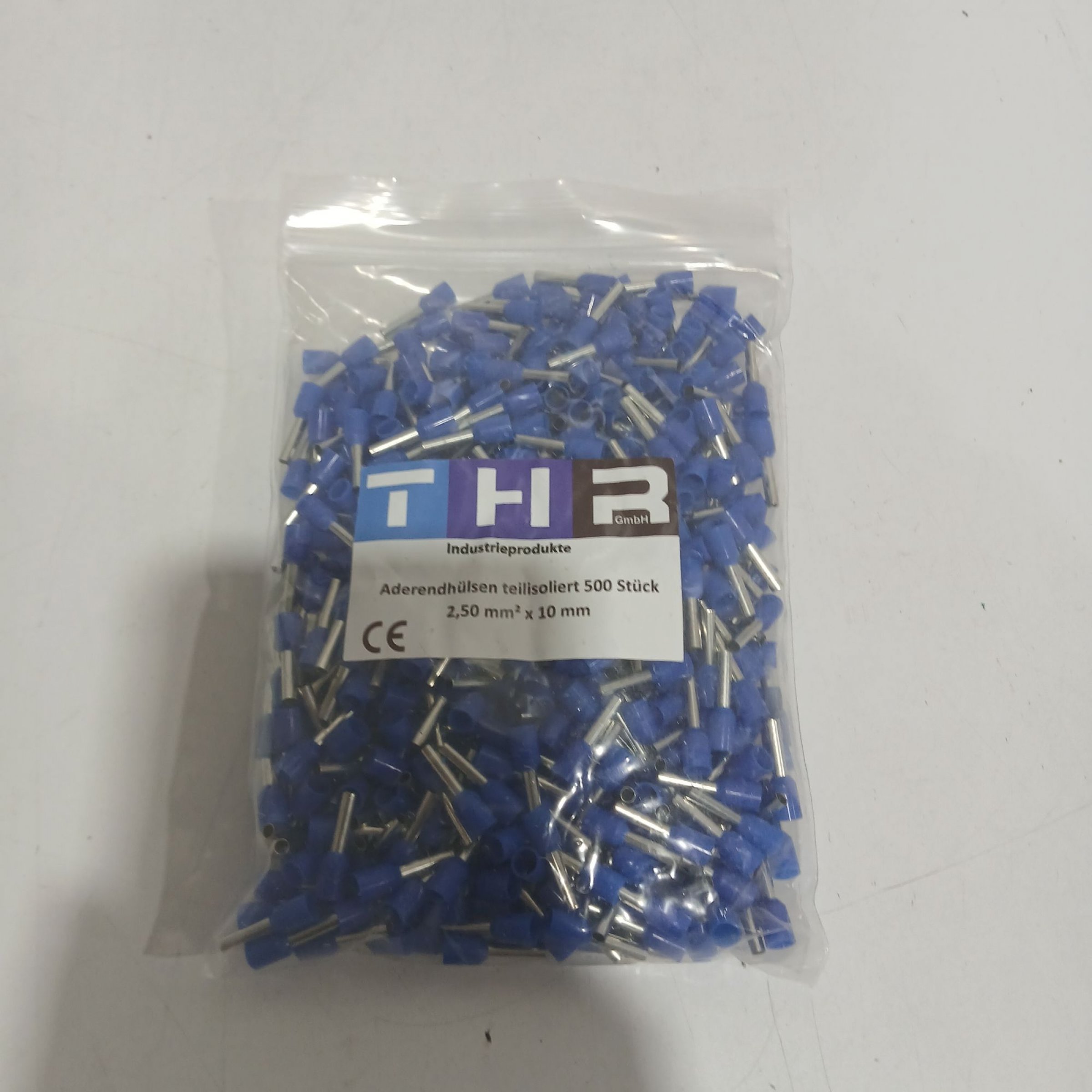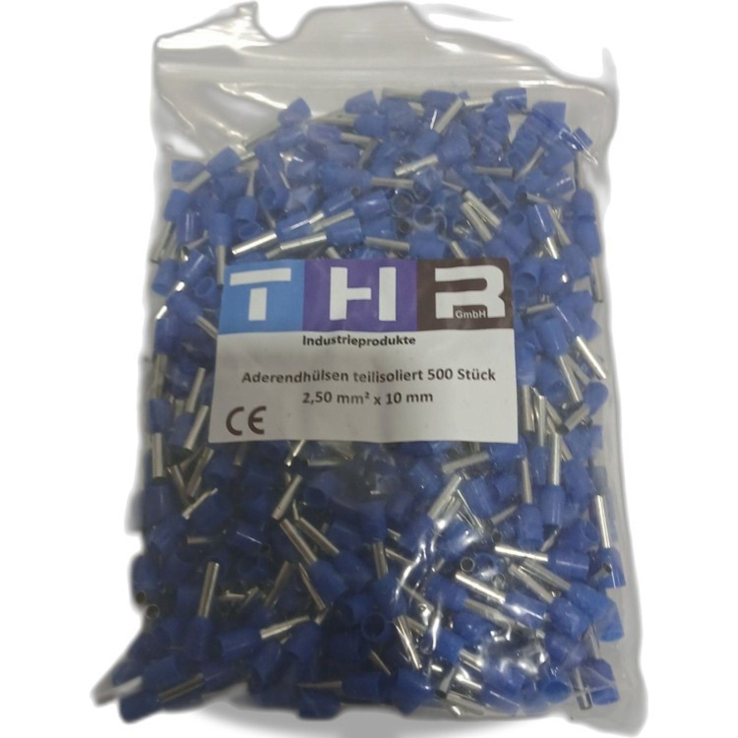 1 Packung THR Aderendhülsen teilisoliert 500 Stück 2,50mm² x10mm