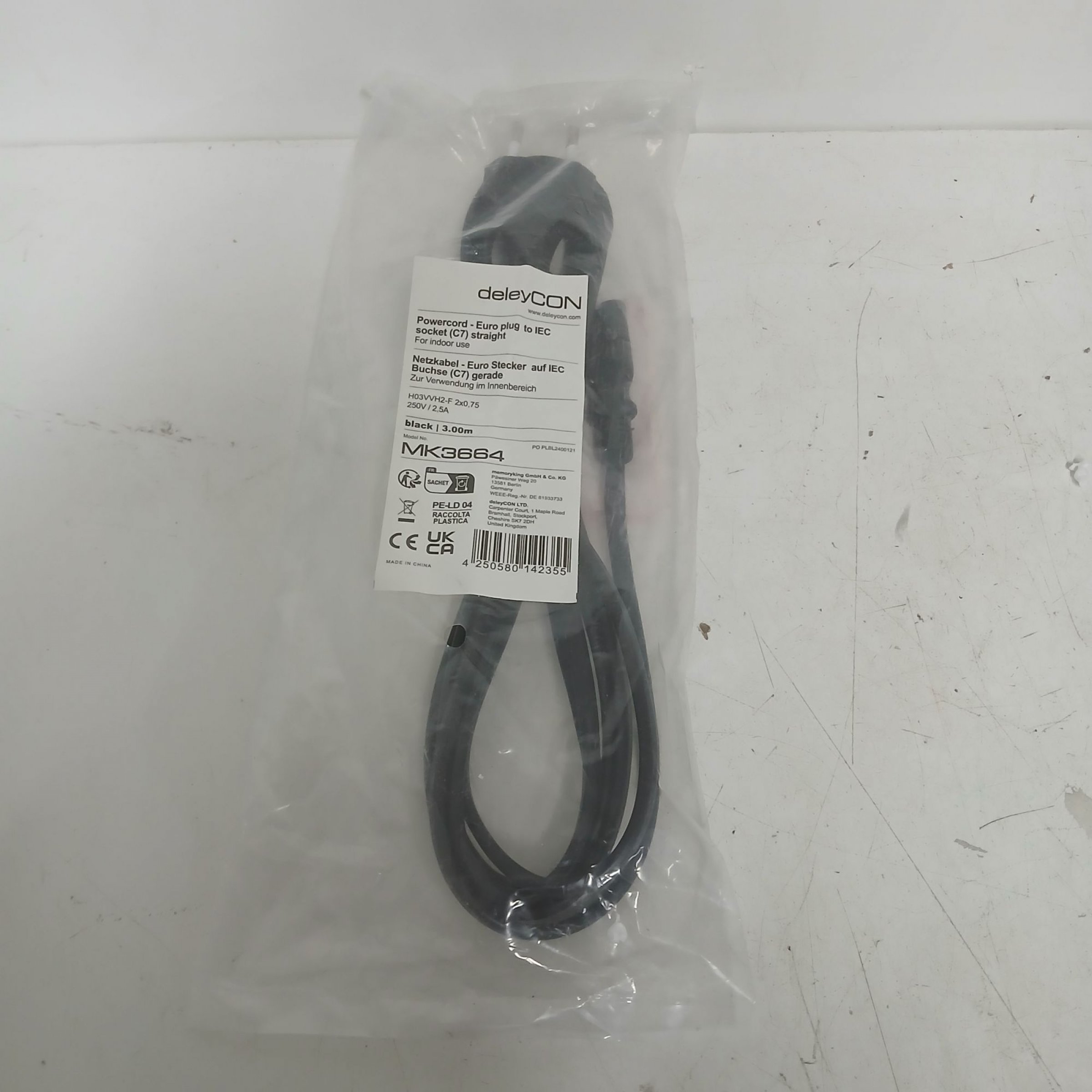1 Stk. DeleyCon Netzkabel C7 3m Black 250V