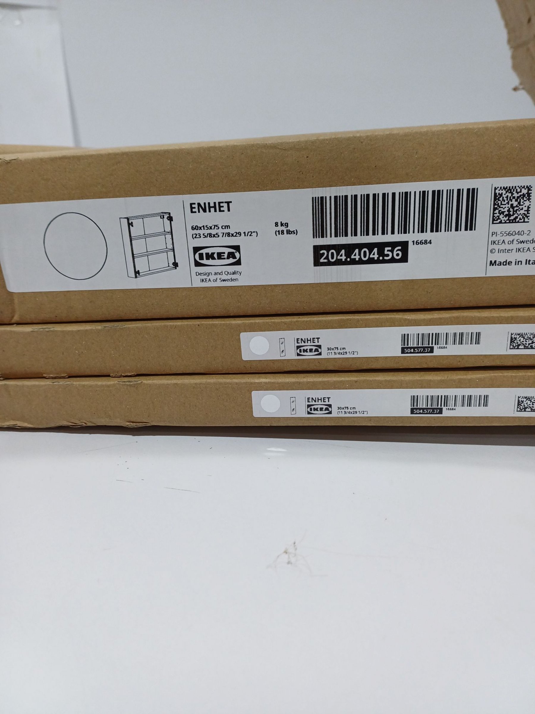 1 Stk. IKEA ENHET Wandschrank mit 2 Böden, weiß, 60x15x75 cm, 2 Spiegeltüren