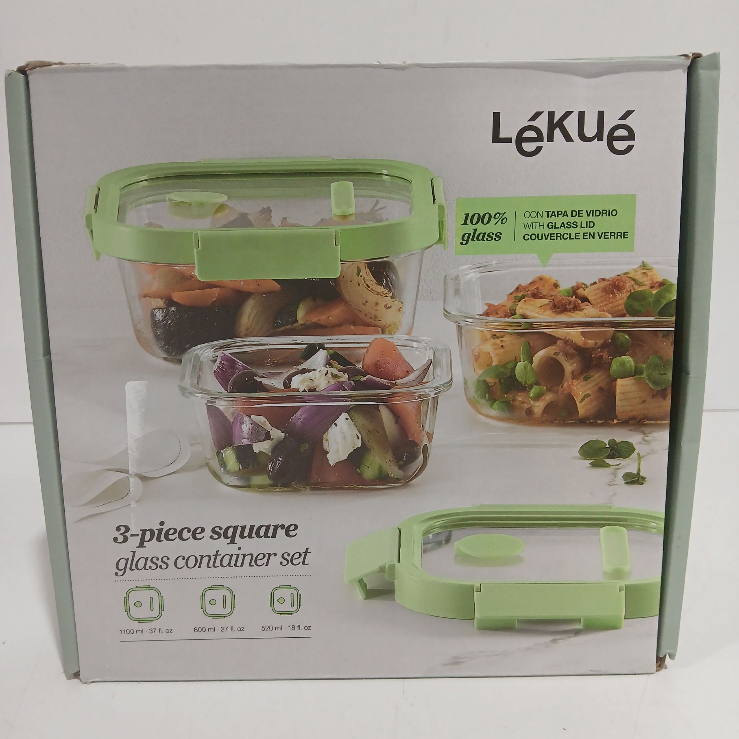 1 Stk. Lekue 3-piece square glass Container Set 1100ml 800ml 520ml