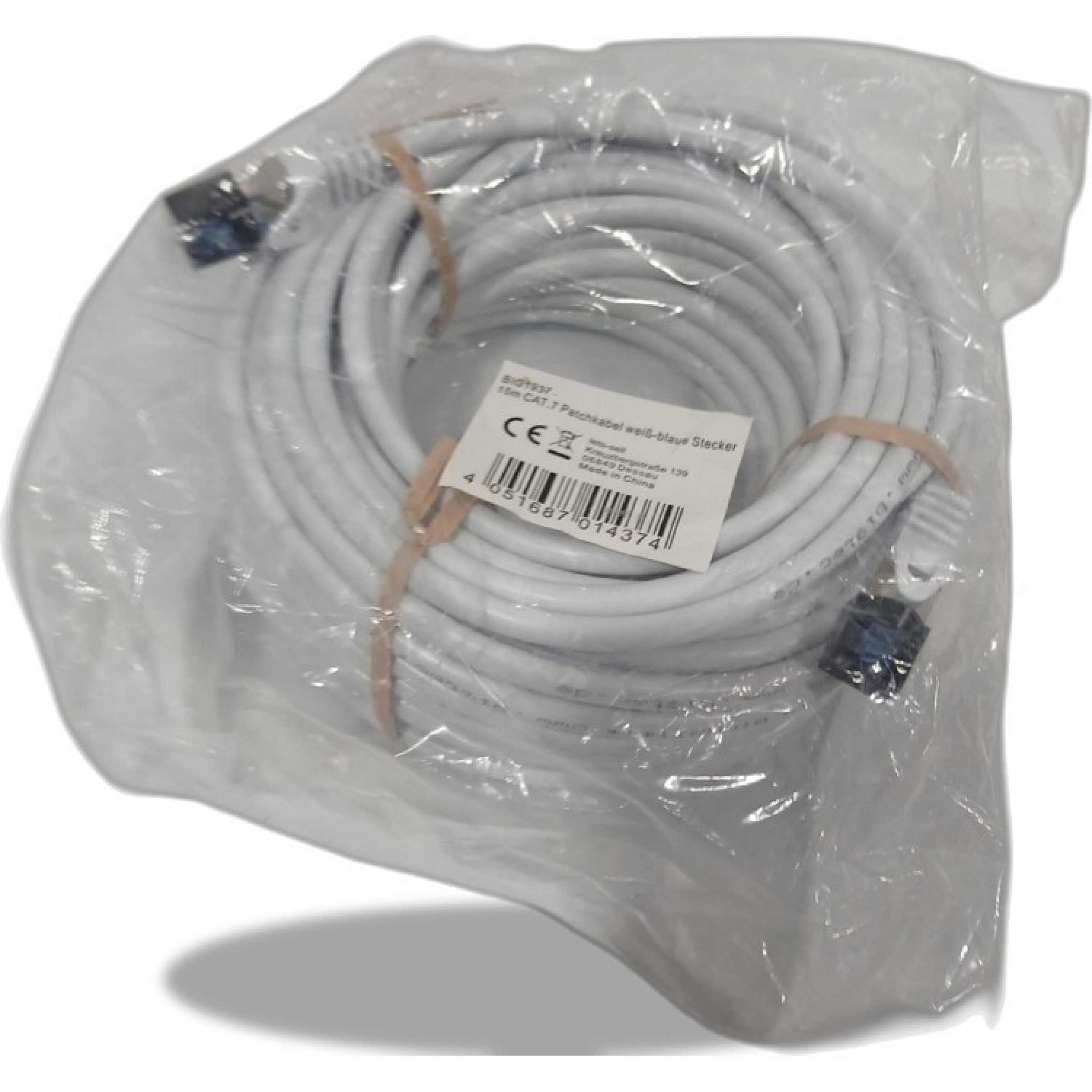 1 Stk. Patchkabel weiß blaue Stecker 15m. Cat 7