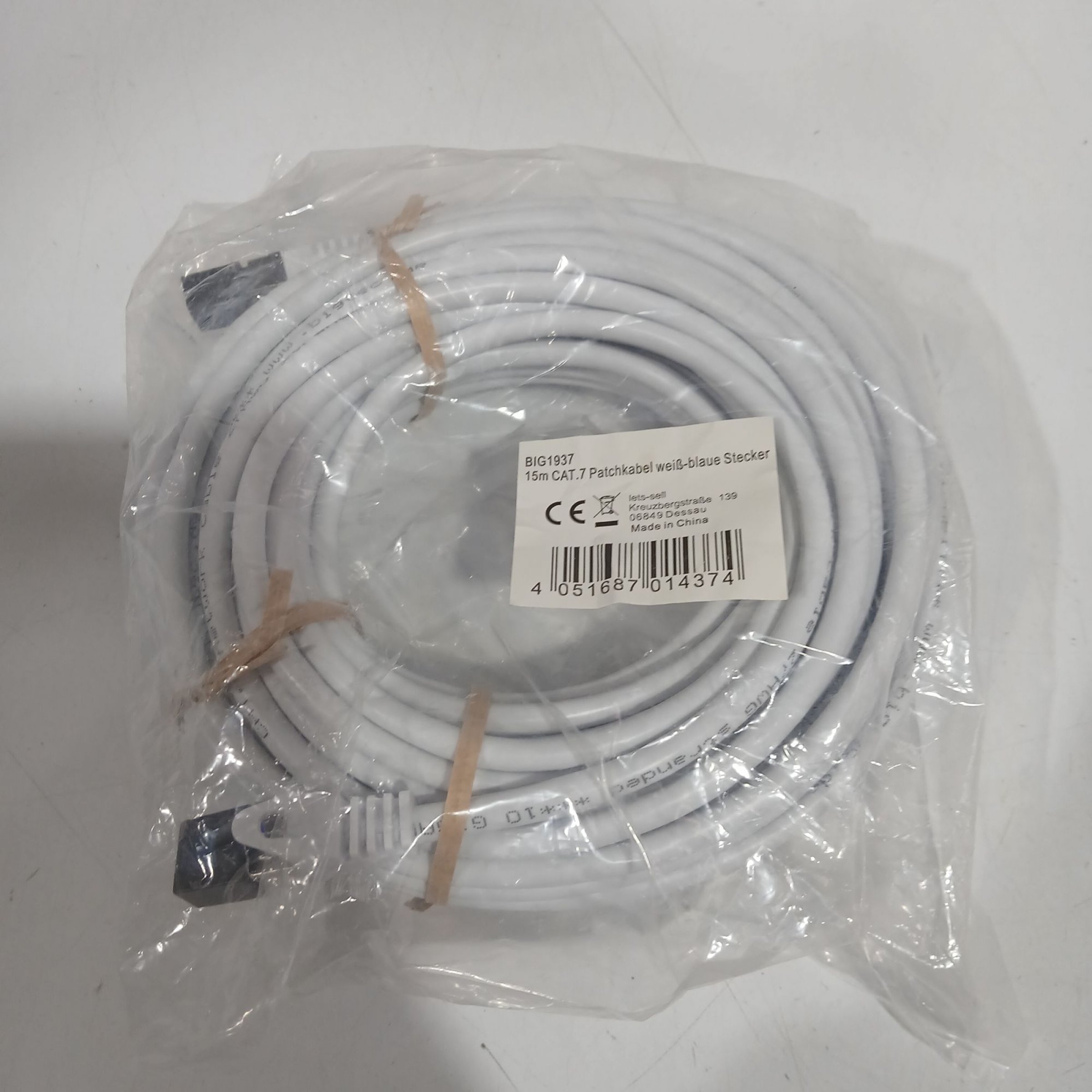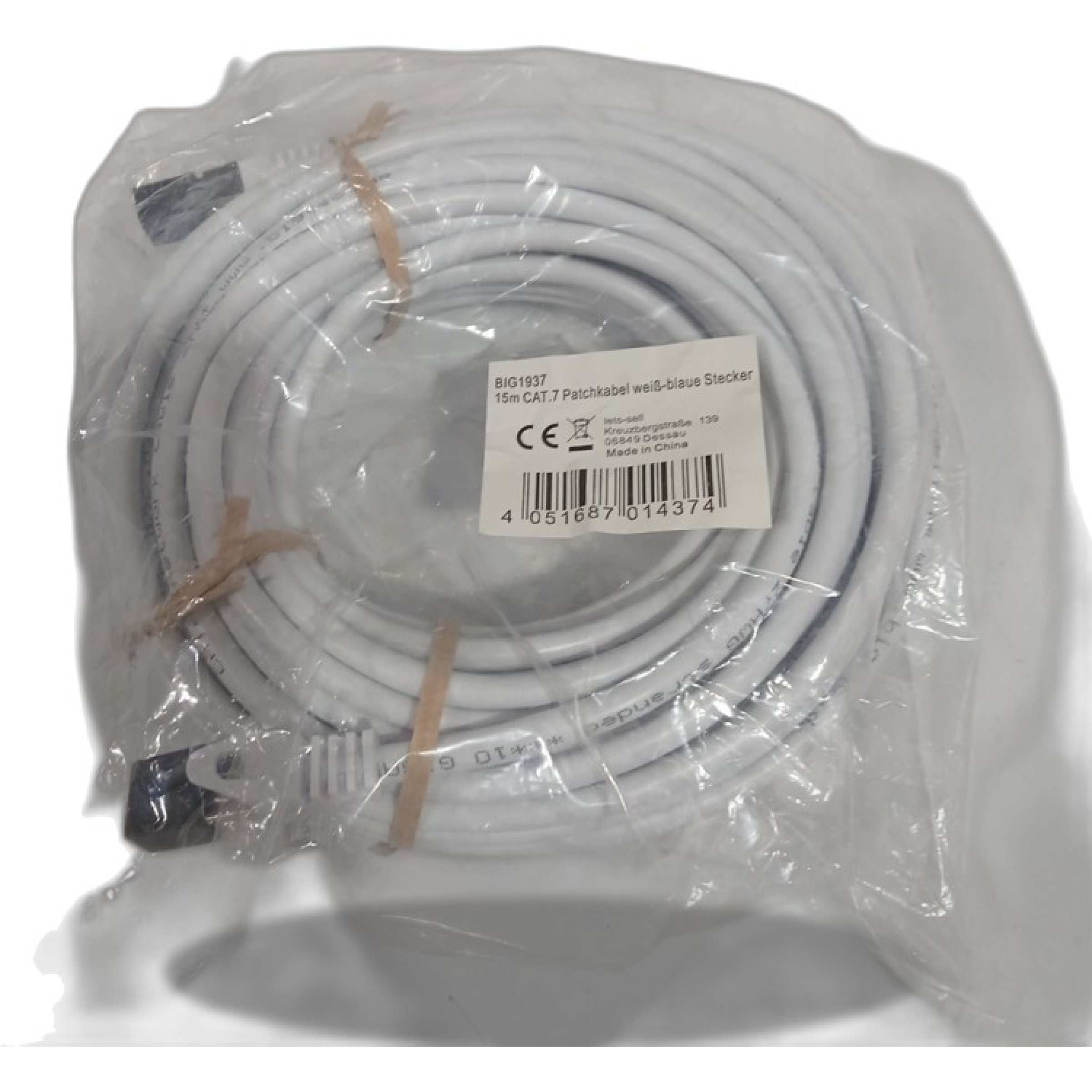 1 Stk. Patchkabel weiß-blaue Stecker 15m