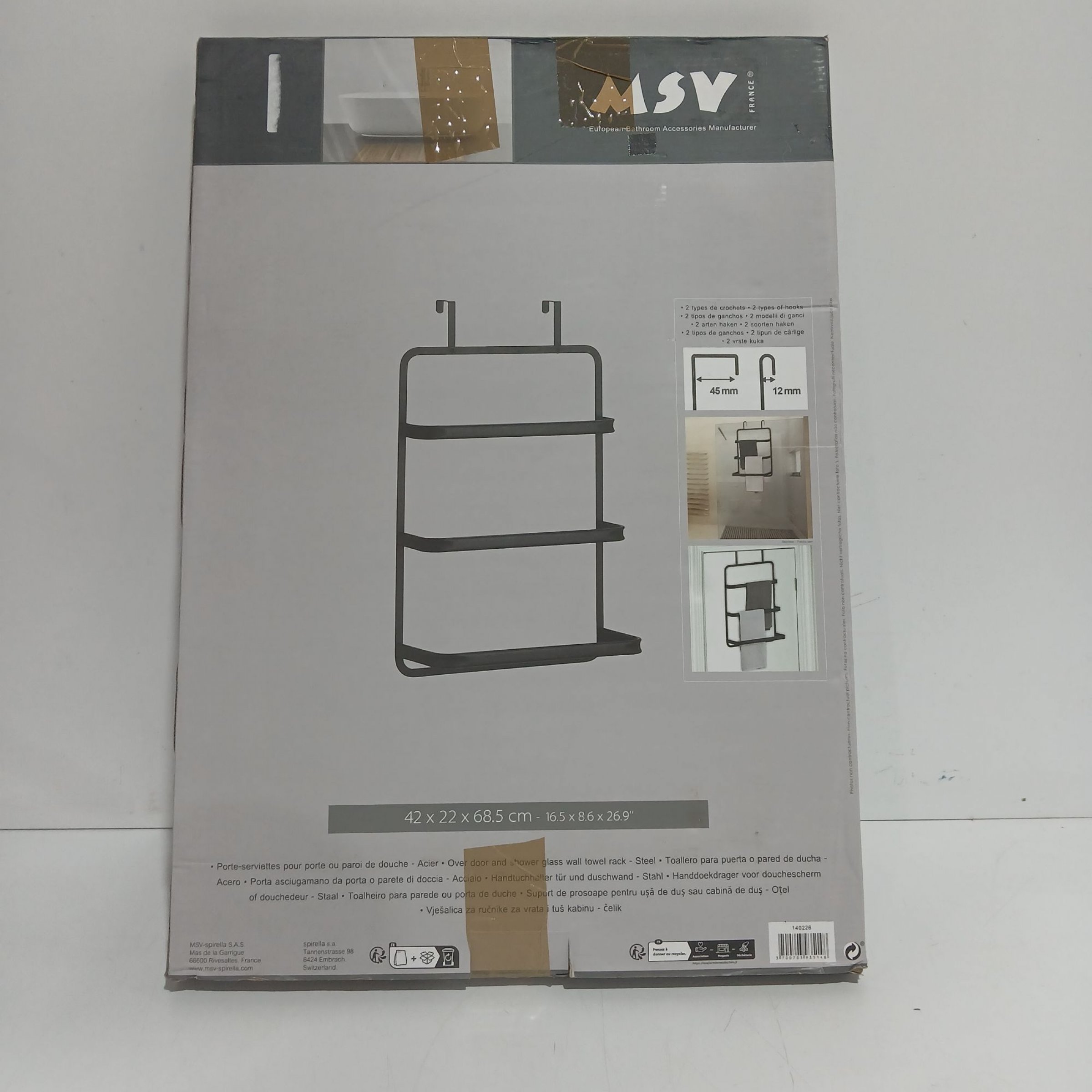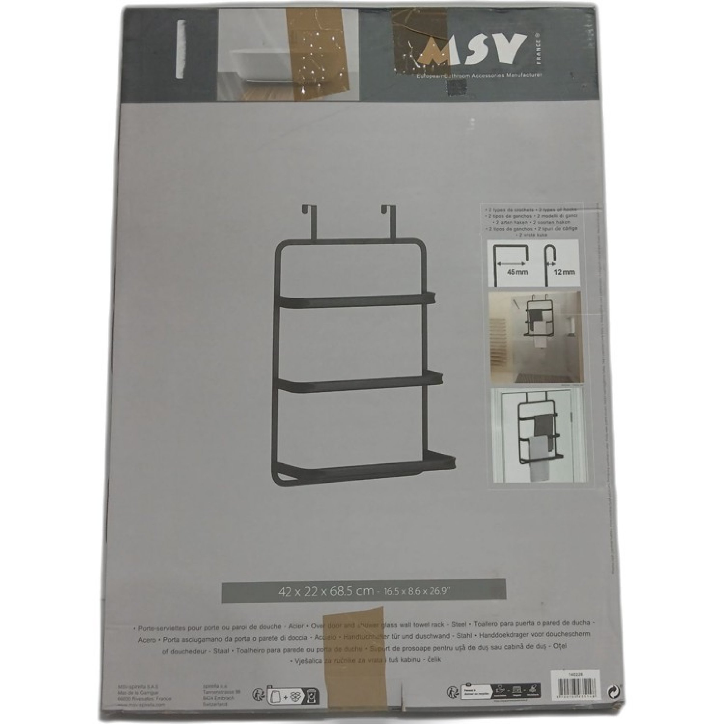 1 Stk. MSV Handtuchhalter für Tür und Duschwand Stahl 42x22x68,5cm