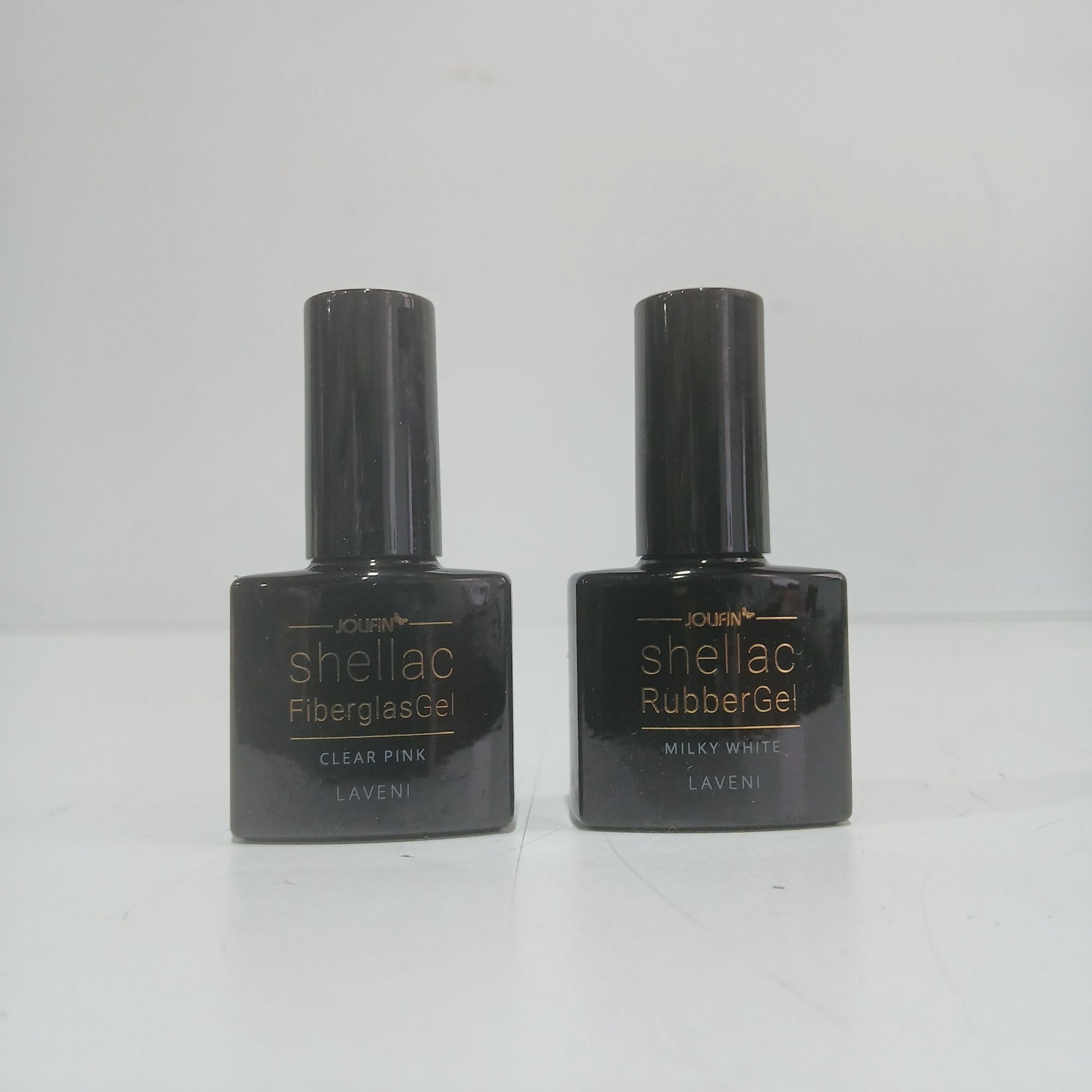 1 Set Jolifin Shellac 1x Fiberglas Gel Clear Pink Laveni und 1x Rubber Gel Milky White Laveni je 10ml