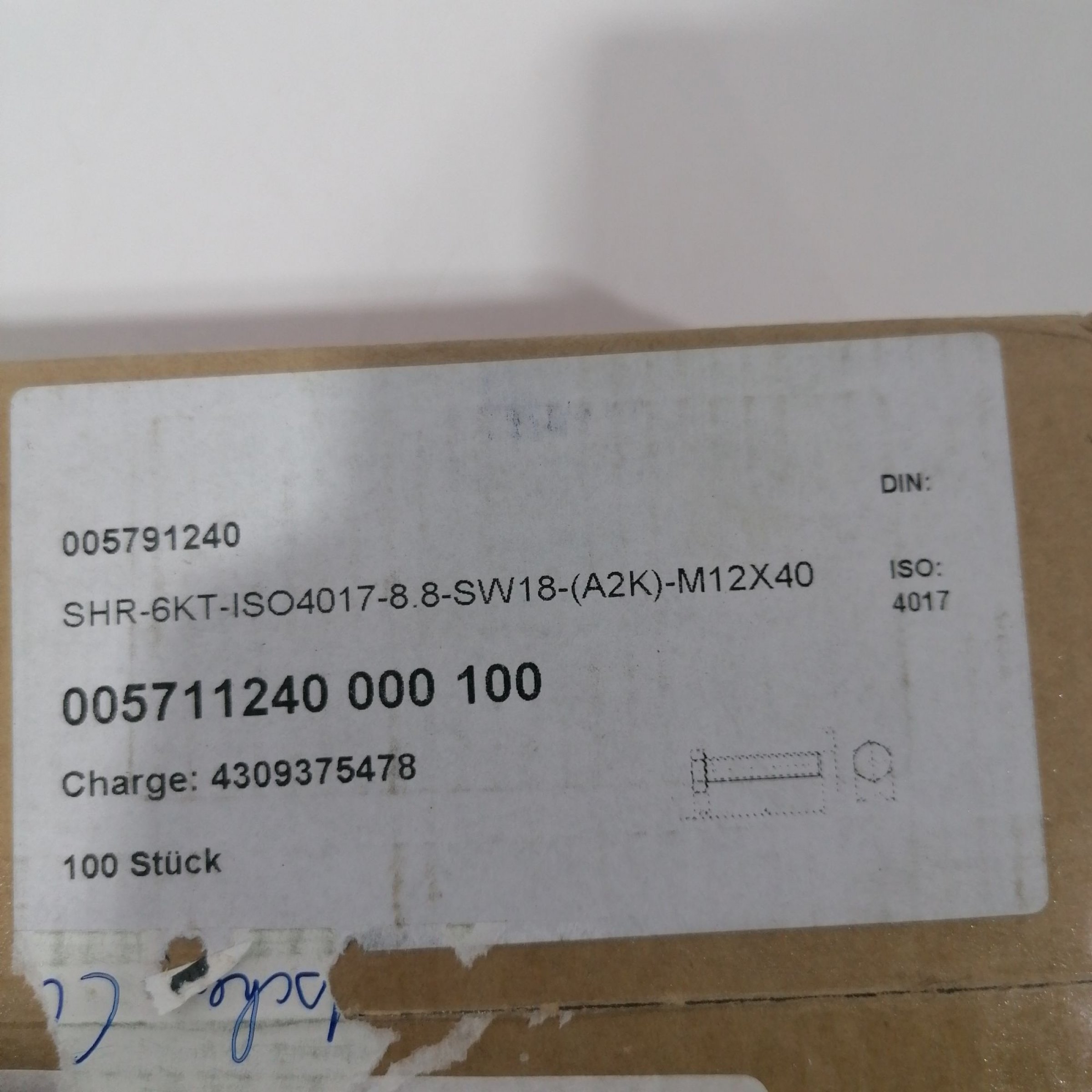 Artikel Nr. 522192: Schrauben 005791240 100StkArtikel Nr. 522192: Schrauben 005791240 100Stk
