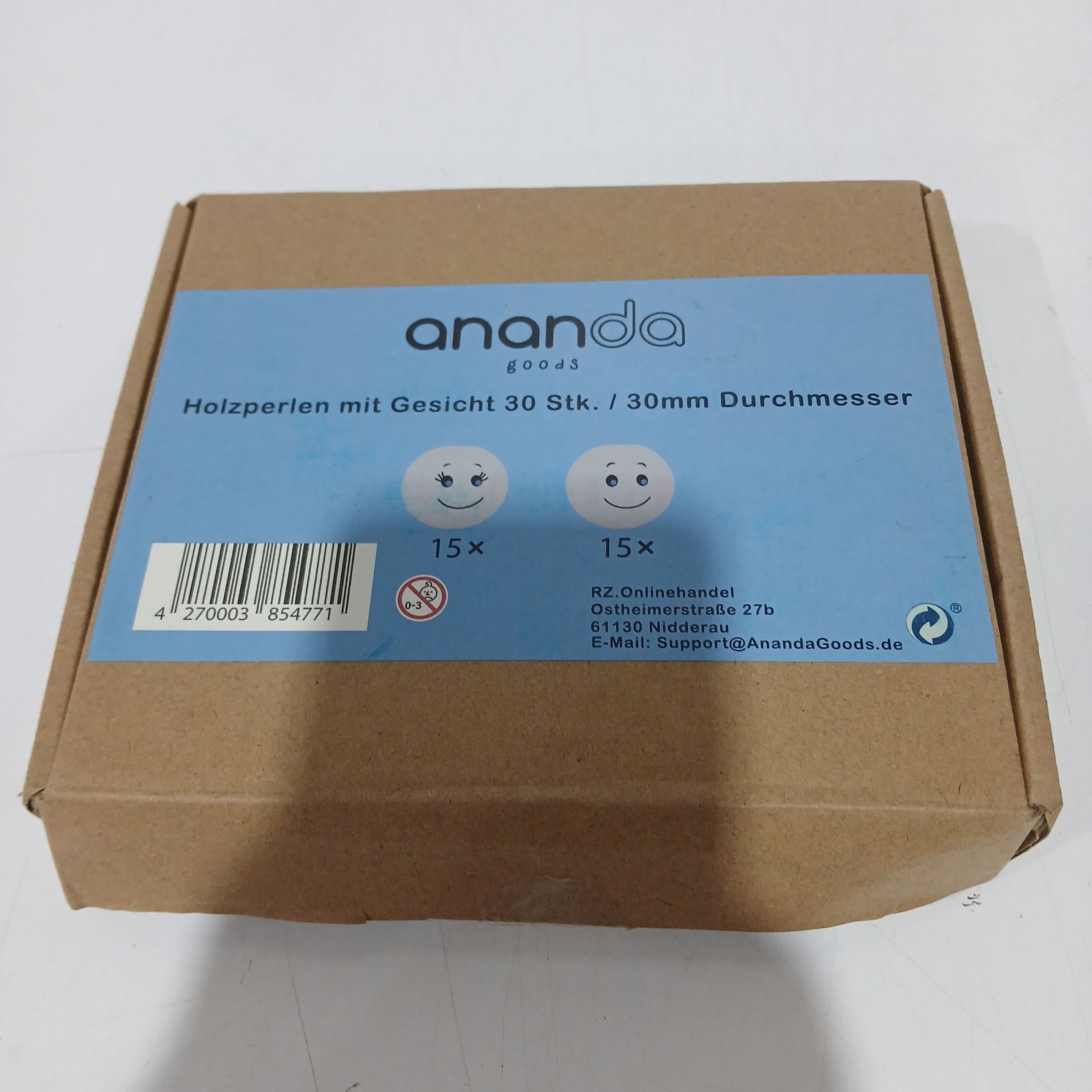 1 Packung Ananda Holzperlen mit Gesicht 30stk 30mm