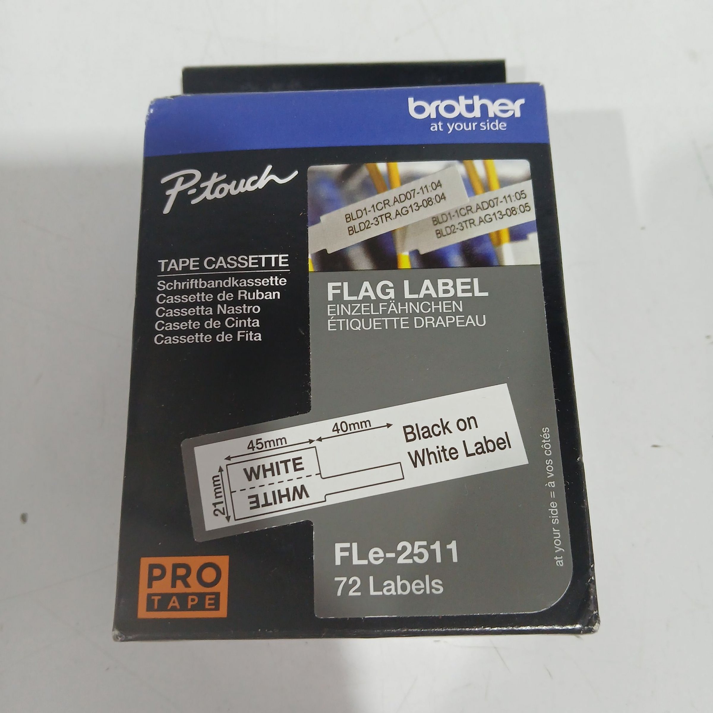 1 Stk. Brother Tape Cassette Black on white Label FLe-2511